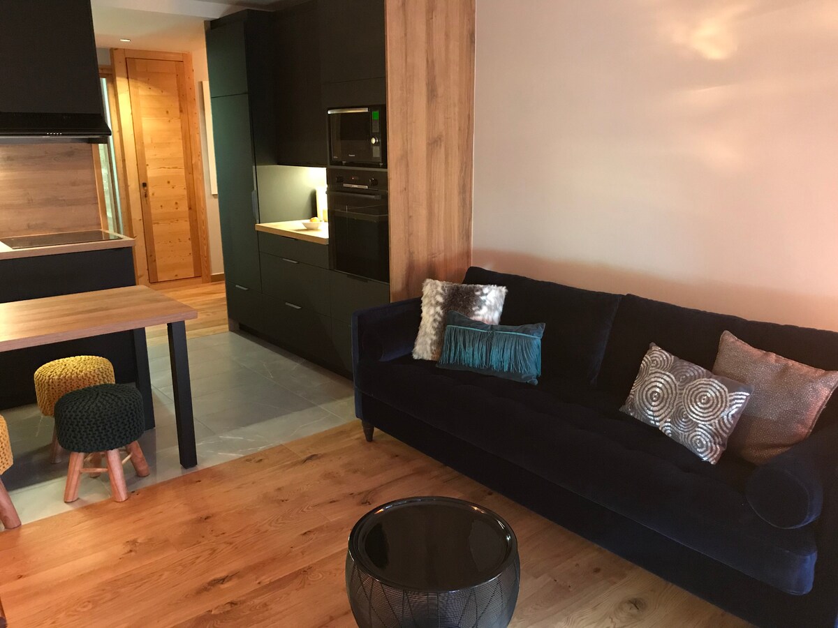 Magnificent high-end apartment, completely renovated, hyper center of val d'Isère, south facing with open views of the Solaise and Bellevarde. It consists of a master bedroom, a room 1 single bed and 2 bunk beds, a bathroom and a living room with open kitchen fully equipped. Access to the runway is 900ft or 1 shuttle stop (at the base of the building). It is equipped with a ski locker with shoe dryer and warmer.