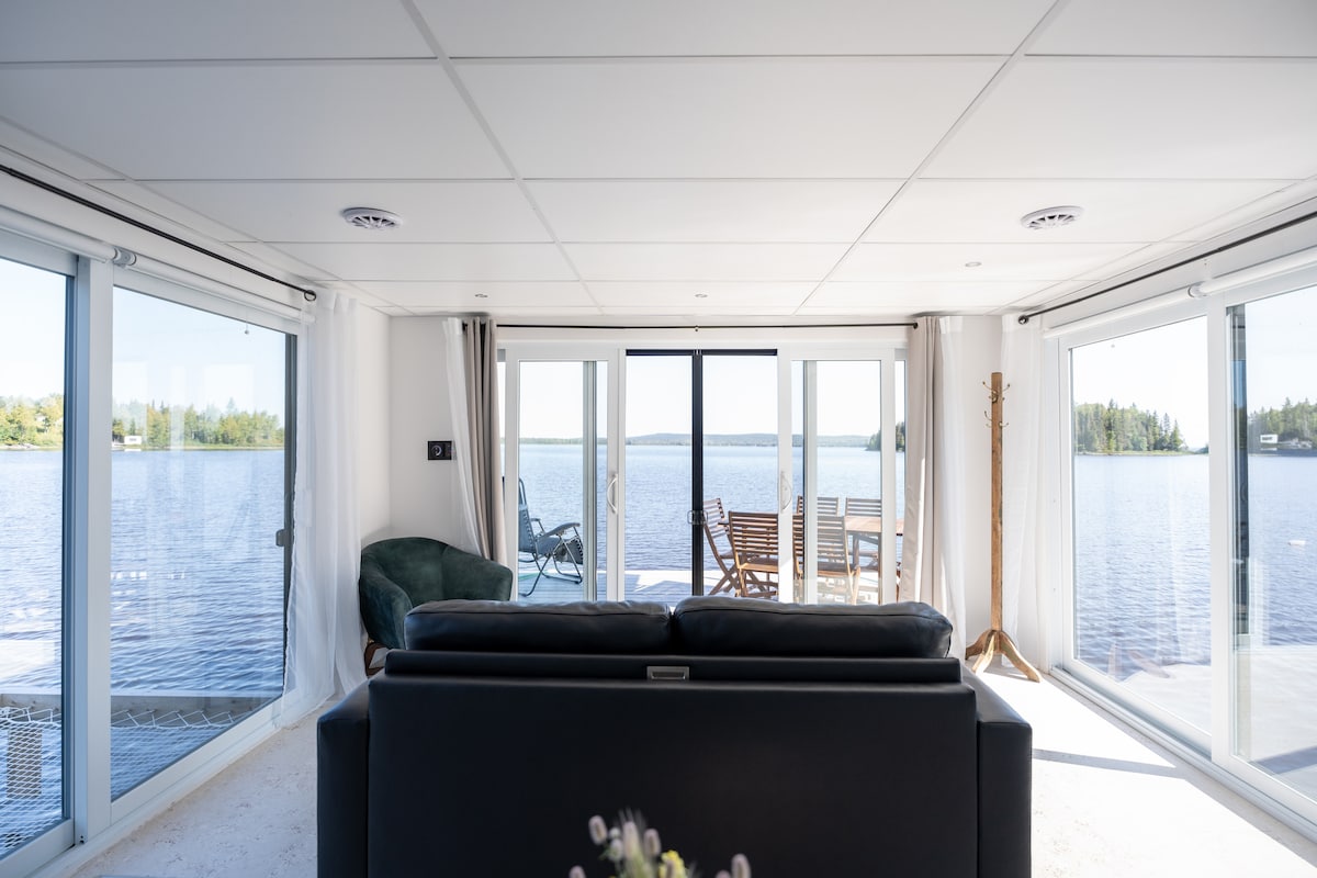 💎 VRHUNSKI PLANINSKI DOM - 4 prostorne spalnice - Velik odprt prostor s kuhinjskim otokom iz kremena – Miza za 12 ali več oseb - Večnamenska soba (trening, joga, sprostitev) - zunanja masažna kad za 7 oseb - Notranja savna z ogrevanimi tlemi – Notranji in zunanji kamin Pravi prostor za sprostitev v vseh letnih časih. - Neposreden dostop do jezera – Poletne in zimske dejavnosti – Dostop do poti za motorne sane – Veliko parkirišče (dovoljene so prikolice) - Pralni / sušilni stroj Klimatska naprava