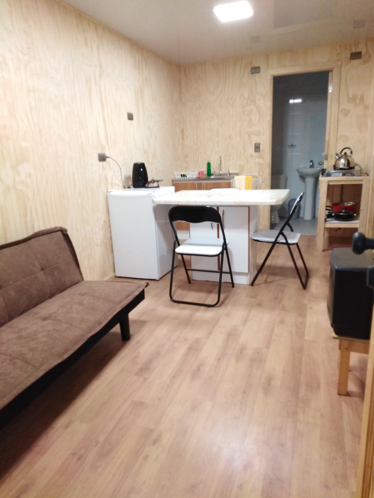 Acogedor dpto tipo estudio en Pucón, perfecto para 2 personas. Comino al Volcán, a 5 minutos en auto al centro de Pucón. Cuenta con cama matrimonial, ropa de cama, toallas, cocina equipada con encimera y horno eléctrico, refrigerador, microondas, hervidor, secador de pelo, SmartTV, Wifi, terraza y estacionamiento privado. Acceso controlado y vigilancia 24 hrs. Adicionalmente posee lavandería espacios comunes como quincho, piscina interior, exterior y sala de juegos, previa reserva