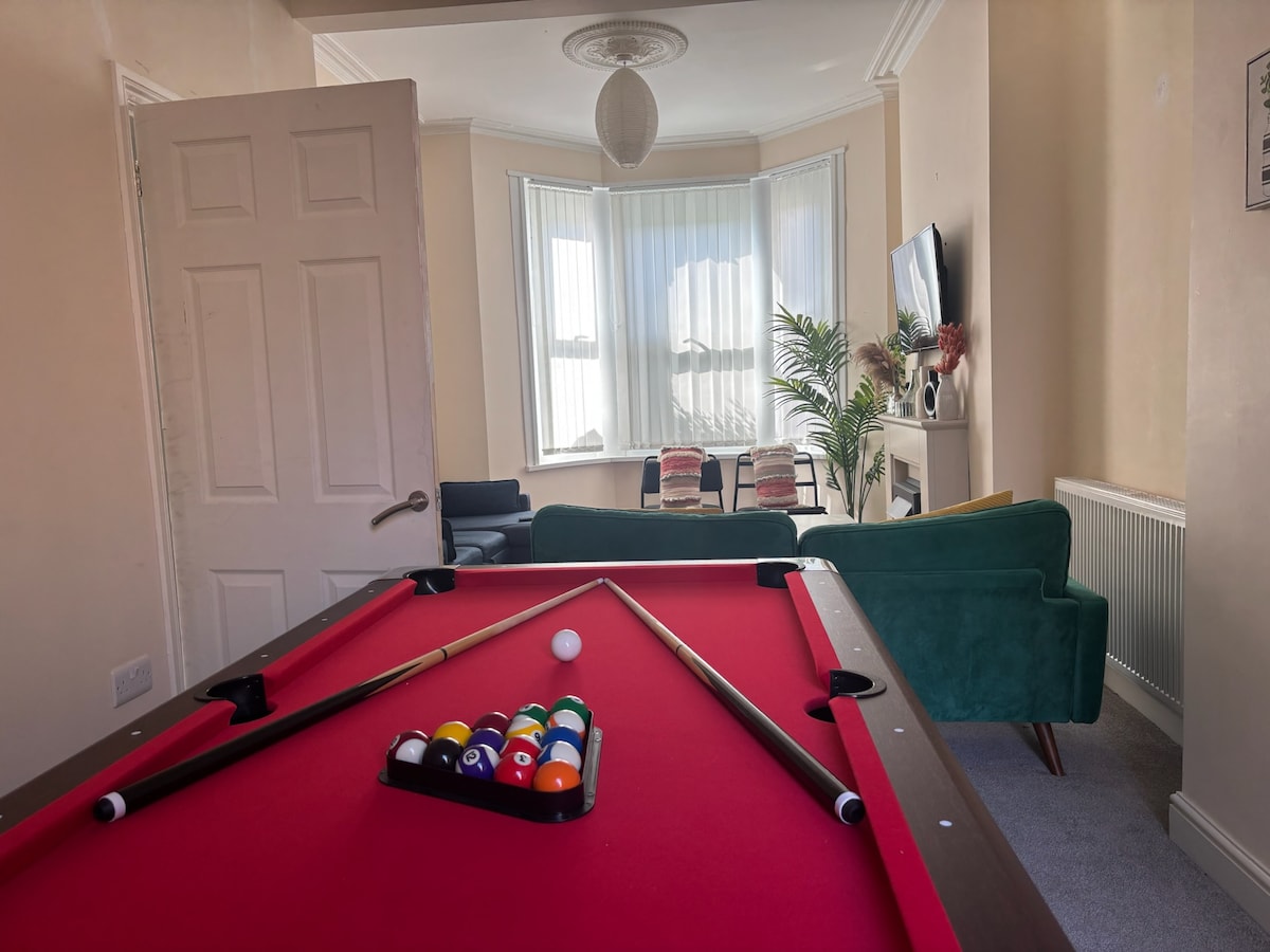 Elegantna mestna hiša s 3 spalnicami, namiznim tenisom in masažno kadjo po želji*. 2 zakonski postelji + 1 spalnica z dvema pogradoma in 2. dnevna soba/4. spalnica z udobnim raztegljivim kavčem. 5–15 minut hoje od stadiona Principality, igrišča za kriket SWALEC in mestnega središča. Prijazni pubi, kavarne za malico, butiki in restavracije so oddaljeni 2 minuti hoje. Gostje imajo na voljo celotno hišo (v omarah so morda osebne stvari). Primerno za kratkotrajne najeme s strani skupin, ki se udeležujejo dogodkov. *Na zahtevo vsaj 5 dni vnaprej. Storitev je plačljiva. Dovoljenje za goste za BREZPLAČNO parkiranje