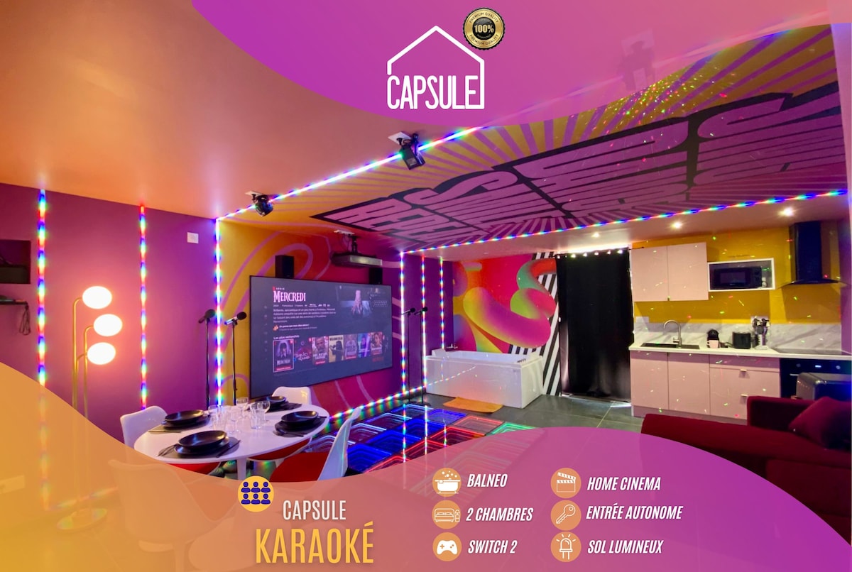 Profitez d'un séjour romantique unique dans une suite de luxe avec écran géant et baignoire balnéo ! Nous vous accueillons dans une maison entièrement rénovée où tout a été pensé pour que vous puissiez profiter d'un moment hors du temps. Pour une nuit magique et romantique avec lit queen size, lumières tamisées, écran XXL, table de billard et bar à bonbons Parfait pour un séjour romantique !