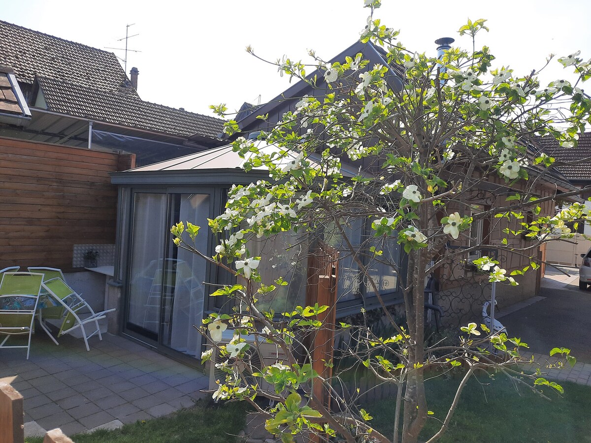 Moje bivališče je blizu : * Strasbourg (32km) (Božična tržnica), * Obernai (6km), * Gertwiller (2km) (Gingerbread Museums), * Colmar (44km) (Božična tržnica), * Nemčija (30km) (Europa Park in Rulantica) Moje bivališče vam bo všeč zaradi : * zelo mirna in podeželska soseska, * kuhinja, * zasebno zunanje parkirno mesto (ograjeno in varno ograjeno mesto), * priložen zunanji vrt, ki je na voljo najemnikom.