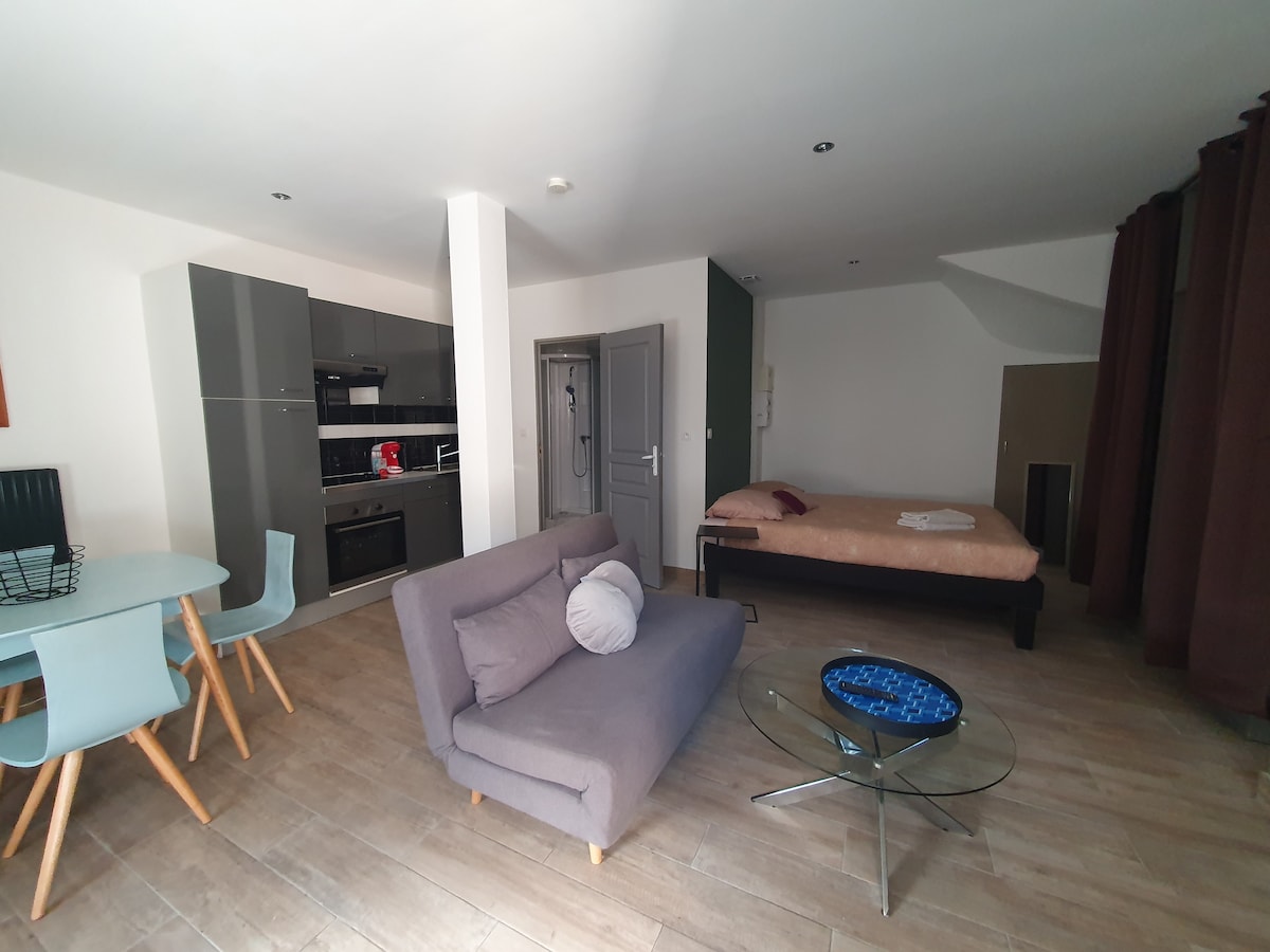 → Na novo prenovljena garsonjera v bližini Auxerreja → z 1 zakonsko posteljo (za 2 osebi) In tudi: → BREZPLAČNO PARKIRNO MESTO V BLIŽINI SHRAMBA → ZA KOLESA → WI-FI → HD TV → INDUKCIJSKA KUHALNA PLOŠČA IN MIKROVALOVNA PEČICA APARAT ZA KAVO→ SENSEO Priročno: → Nahaja se 10 minut vožnje z avtomobilom od središča mesta Auxerre → Nahaja se 2 minuti od stadiona Abbé-Deschamps z avtomobilom → Nahaja se 5 minut vožnje z avtomobilom od pomola → Nahaja se 15 minut vožnje z avtomobilom od cestninske postaje A6 Auxerre-South