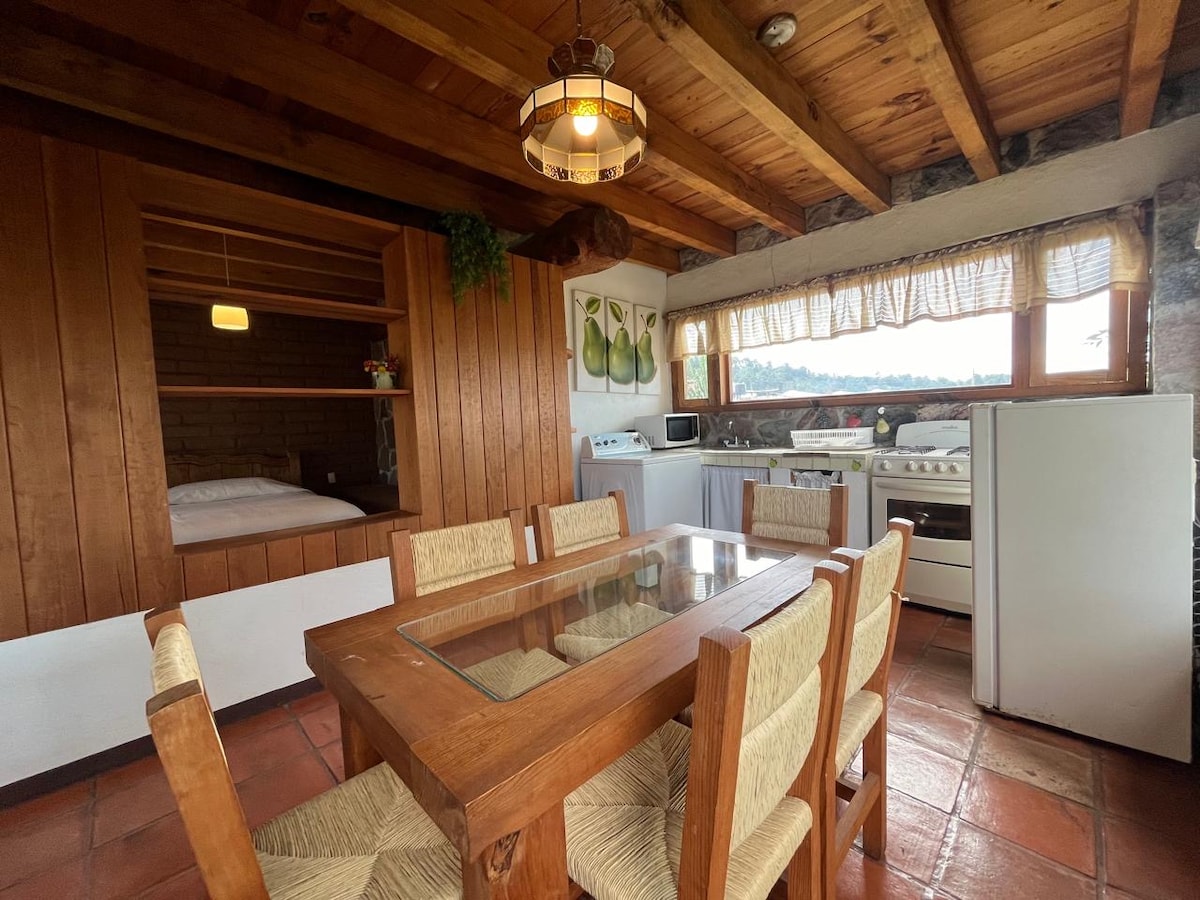 Nice and comfortable suite for un to four people with an independent access and parking inside the property for one car, with an option to park another car outside the property. Only three minutes from Downtown Avandaro, in a quiet street with a view to the forest. There is a double bed, a double futon, a full bathroom, TV with Netflix, WiFi, a desk with a very comfortable chair, minibar, and coffee maker.