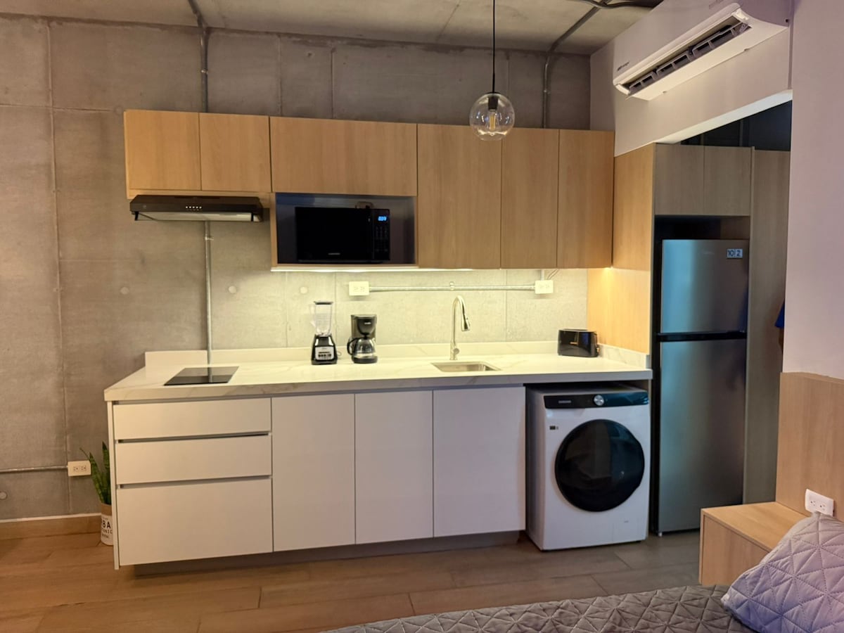 Dobrodošli v Solari! Veselimo se, da vas bomo lahko sprejeli v enem od naših najbolj razkošnih prenočišč na Airbnbju v Monterreyju. Stanovanje z visoko višino in okni, ki obdajajo celoten prostor. ¡Edinstven razgled! V celoti opremljeno in opremljeno visokokakovostno. Wi-Fi, pametna televizija, klimatska naprava, 1 zasebno parkirno mesto. Idealno za vodstvene delavce, družine in turiste. Non stop varnost, 1 parkirno mesto in 2 dvigali. Nakupovalno središče z restavracijo in OXXO je dostopno peš. Odlična lokacija.