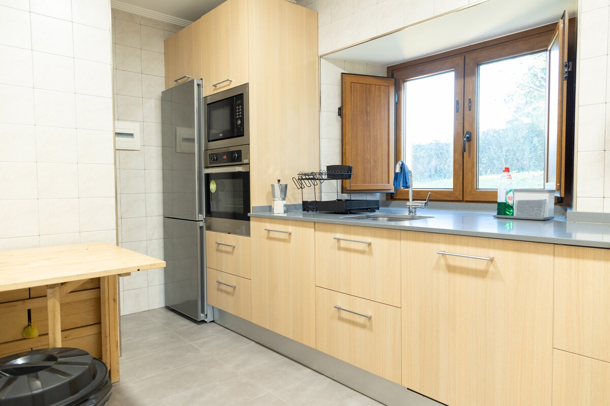 Artesoro Baserria je hiša za najem za 8 oseb, 25 minut od Bilbaa v Galdamesu (Bizkaia). Na voljo so 3 sobe z zakonsko posteljo in individualno televizijo; na odprtem prostoru sta dve enojni postelji in raztegljiv kavč. Kuhinja je popolnoma opremljena, dnevna soba velikosti 35 m2 s pametno televizijo in udobnimi kavči, 2 kopalnici in straniščem, dve terasi z vrtnim pohištvom, balkon in verando, WI-FI, individualno ogrevanje v vsaki sobi, žar, prostor za sprostitev, zasebno parkirišče in POLNILNIK za električna vozila.