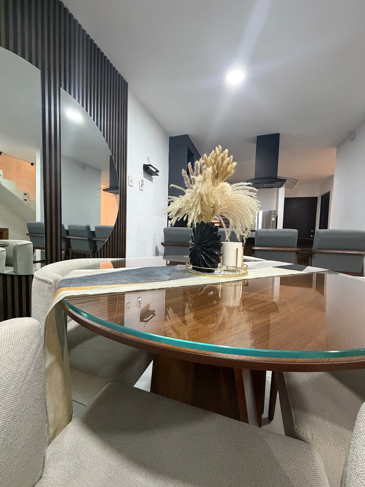 Sprostite se z vso družino v tej nastanitvi, kjer je mir zračen, lahko uživate v vsem udobju in opremi, ki jo želite. Imamo 3 sobe, 2 zgoraj z omaro in 1 v pritličju. 1 kopalnica navzgor in pol navzdol. Kuhinja, opremljena za vaše udobje. Prostorna jedilnica, v kateri lahko uživate kot družina. Dnevna soba s televizijo. Dvorišče s pralnim strojem. Avtomobil s streho za 1 veliko avtomobilsko vozilo ali 2 majhni. Alberca v družinskem vzdušju (skupni bazen)
