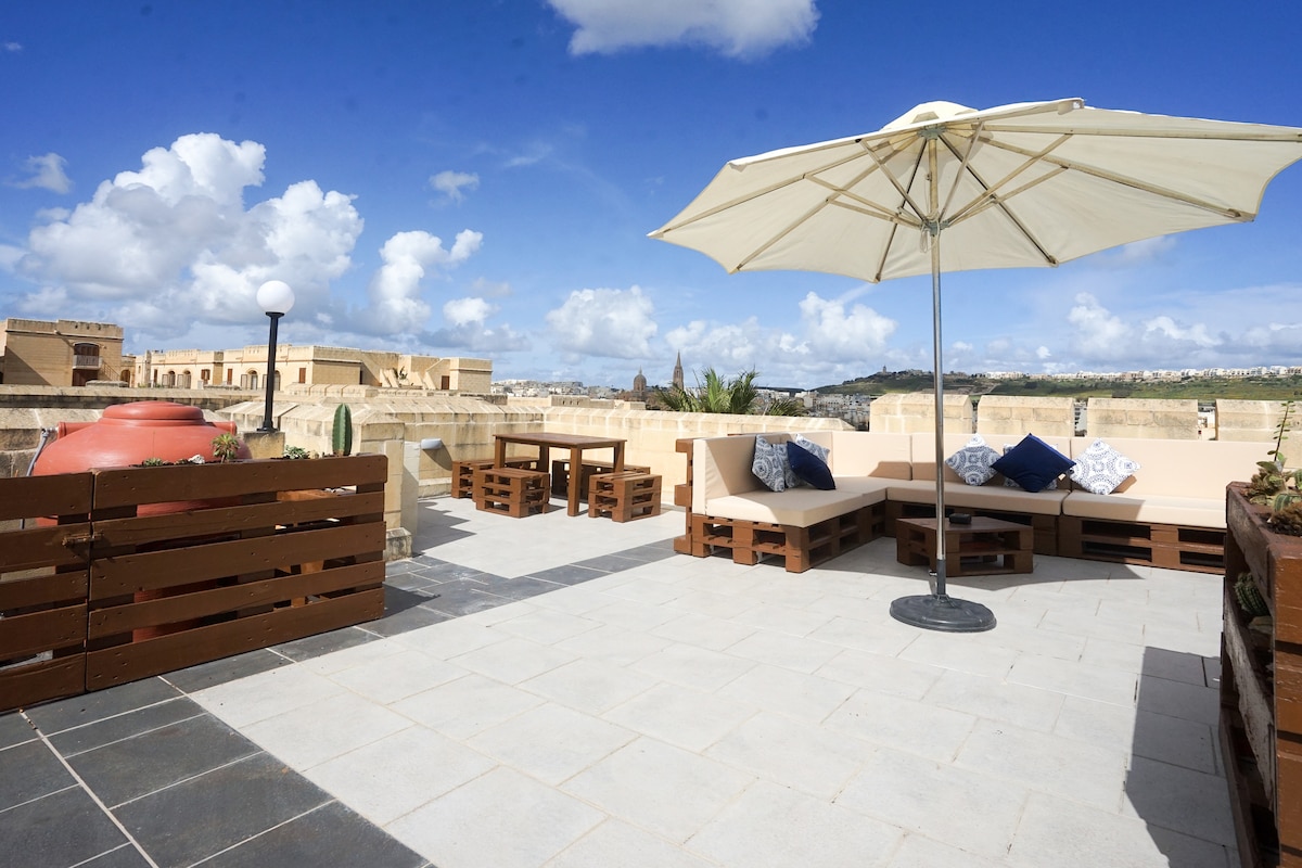 Lep popolnoma klimatiziran zasebni studio penthouse postrežen z vsemi ugodnostmi v osrednji Malti. Penthouse ima kopalnico s straniščem in tušem, čajno kuhinjo , plinski štedilnik in mikrovalovno pečico (vključno z zajtrkom, čajem, kavo, žiti, rogljički, mlekom ter napravami za pripravo kave in čaja), za vse vaše potrebe, udobne postelje, majhen pisarniški prostor, televizijo in tudi prostor za prosti čas.