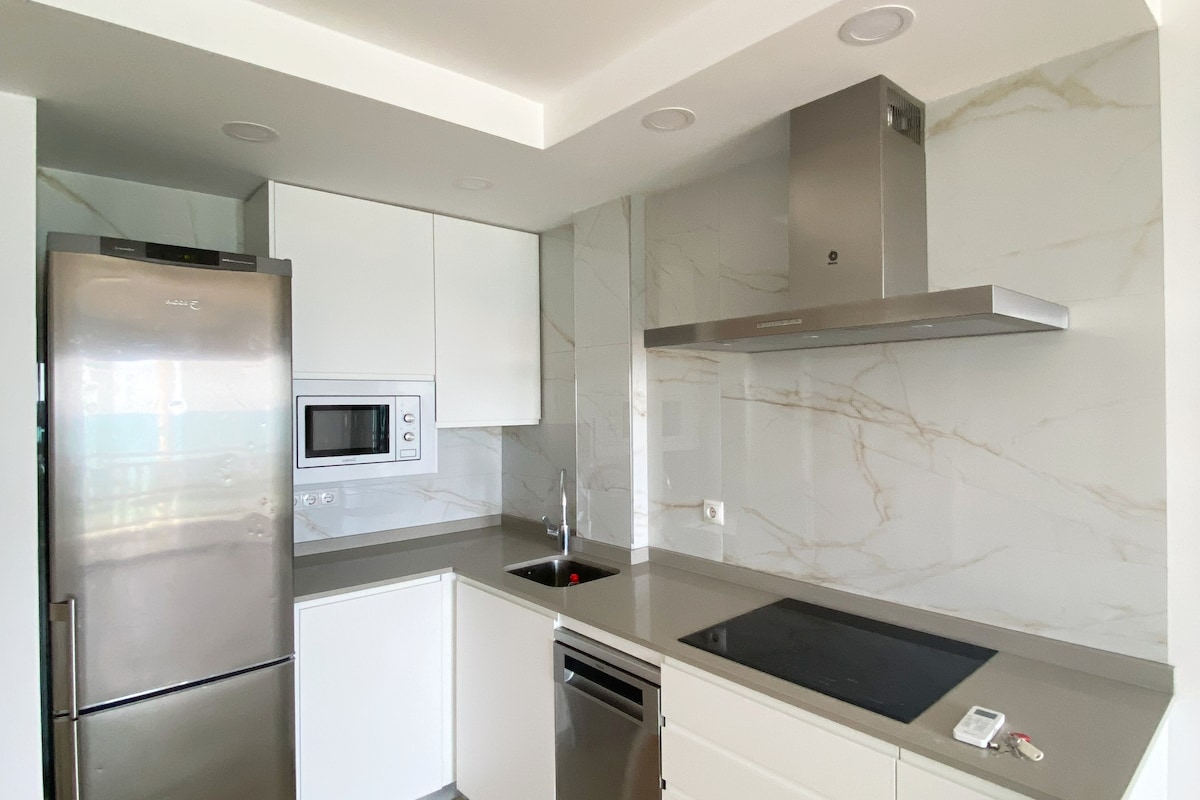 Apartamento compact 1a Línea de playa centro, 35m2 . Nepremagljiva lokacija, le nekaj minut hoje od središča mesta. Za gibanje po mestu ne boste potrebovali vozila. Tramvaj, približno 10 minut. Postajališče »Creueta« Našli boste trgovine, supermarkete, lekarne ... Prečkali boste cesto in stopili boste na pesek, številne bare in restavracije, da boste lahko uživali v naši neverjetni gastronomiji. Uživajte v razgledu na kavo na naši terasi ali večerjajte z odsevom morja. Nova postelja za 1,50