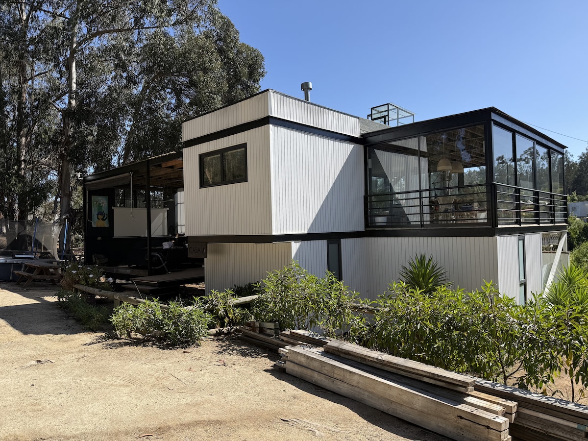 Udobna hiša za uživanje v nekaj sproščujočih dneh v naravnem mirnem okolju. S čudovitim bazenom in quinchom. Dve udobni sobi. Kuhinja je v celoti opremljena s pečico, cvrtnikom, mikrovalovno pečico, čajnikom, drugimi pripomočki in kamnito pečico zunaj. Ponuja udoben gozd v dnevni sobi in glavni sobi, ki je kot nalašč za hladnejše noči. Nahaja se v Condominium Reserva Ecológica Oasis La Campana, 1 uro in 20 min od Stga in 1 uro od Viñe.