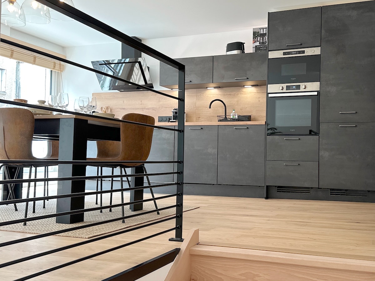 Tarif tout compris, ménage inclus * ! Rénové en 2025, L’Atelier Louis & Cie (83 m², classé 4★) est à 3 min du centre-ville et 5 min du GR65. Appartement T3 Premium, esprit atelier, ambiance chaleureuse, nuit au calme. 2 chambres avec lits Queen Size, canapé convertible avec vrai matelas (120x190), 2 salles de bain, cuisine suréquipée. Dépose-minute + parkings à 1–3 min à pied (gratuit samedi après-midi, dimanche, jours fériés), bornes de recharge à 50 m.