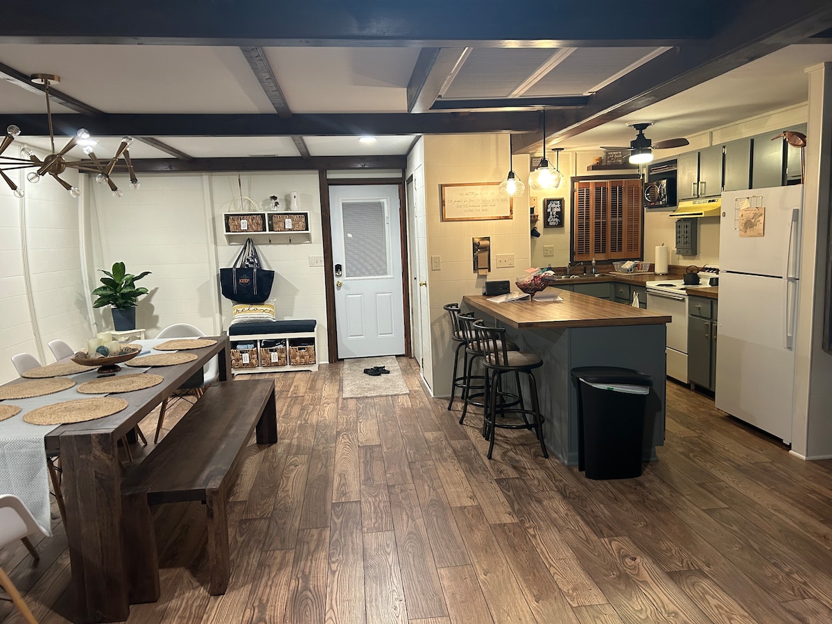Hiša v slogu ranča s površino 1200 kvadratnih metrov z 2 spalnicama in 1 kopalnico. Glavna spalnica ima 1 zakonsko posteljo (Queen), v 2. spalnici pa pograd z enojnima posteljama na kolesih, ki omogoča skupno 5 gostov. Naprave, ki so na voljo za uporabo, so pralni/sušilni stroj, hladilnik, štedilnik, mikrovalovna pečica in pomivalni stroj. Za uporabo je na voljo novejši žar na propan. *Pograd bo težaven za starejše posameznike, ker je nižji pograd nizek. Pogradi so res zasnovani za manjše otroke.