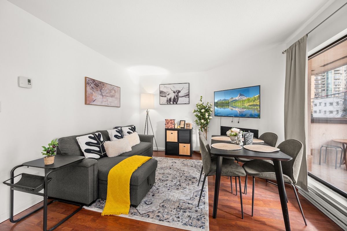 Welcome to my beautiful 1200 sq ft. New York style loft in downtown Vancouver's Gastown! This place is a true, fully stocked, home away from home with comfortable and stylish furnishings. Sit back on your couch and 58 inch smart TV, cook a meal in the fully stocked kitchen with a gas stove top, or enjoy a relaxing bath in your blue bathtub - the options are endless! Plus in-suite laundry (washer & dryer)!