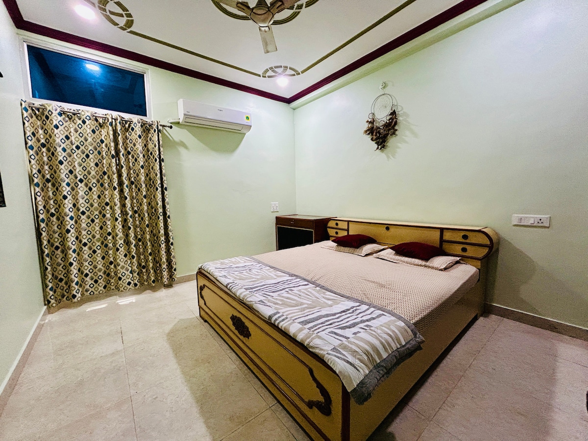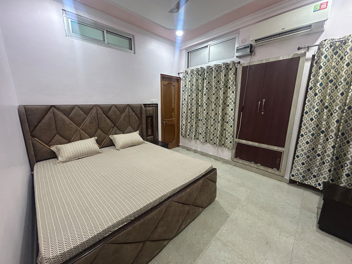 Udobno in razkošno prenočišče s popolno zasebnostjo neodvisnega 4. nadstropja za družino . Centralizirana klimatska naprava. Pijte čaj z mirnim razgledom na naš čudovit vrt s teraso in uživajte v sončnem vzhodu in sončnem zahodu s svojimi najdražjimi . Odlična lokacija z boljšo povezljivostjo in ozaveščanjem . Nekatere glavne lokacije tempelj Kashi Vishawanth - 2,7 km Železniška postaja - 1,7 km Reka Ganga - 2,7 km