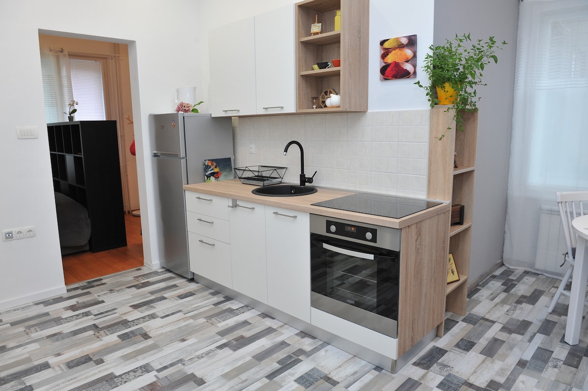 Apartma v Varaždinu, opremljen za prijetno in sproščujoče bivanje. TV, WiFi, klimatska naprava... Apartma ima spalnico z zakonsko posteljo in kakovostno kavč posteljo v dnevni sobi. Opremljena kuhinja (aparat za kavo,štedilnik, kuhalnik za vodo, hladilnik, pomivalni stroj) z jedilno mizo. Kopalnica ima prho, stranišče, pralni stroj, sušilec in sušilec za lase. Apartma se nahaja v apartmajski stavbi, v drugem nadstropju. Približno 15 minut hoje do centra Varaždina.