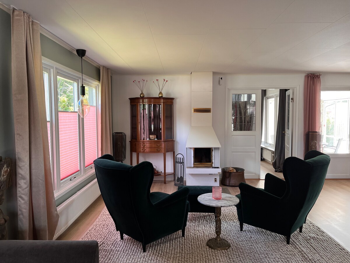 Ta švedska podeželska hiša je pravi oddih. To je popoln kraj za sprostitev v naravi. Ima leseno peč, lepo odprto kuhinjo, dnevno sobo in spalnico s steklenimi vrati, ki se odpirajo na veliko teraso z zasebnim vrtom. V spalnici je velika zakonska postelja in možnost otroške postelje. Na voljo je zelo udobna kopalnica s kadjo. Čudoviti gozdovi, jezera, igrišče, pekarna (odprta ob petkih) in regenerativna kmetija z zelenjavo so tik za vogalom. PN: Omejen javni prevoz