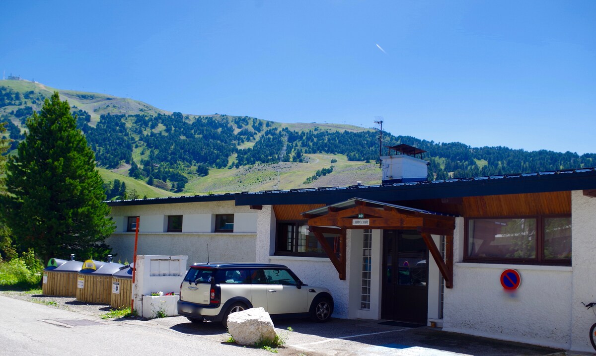 Garsonjera 28 m2 s pogledom nasmučišča. ESF,smučarske žičnice, trgovine v bližini. Stanovanje je popolnoma opremljeno:Wi-Fi, velika TV, hi-fi, DVD predvajalnik, raclette in fondue naprave, senseo,pomivalni stroj, mini pečica, grelnik vode v mikrovalovni pečici, opekač kruha. Na voljo so gospodinjski izdelki,olje, kis, sladkor, sol, poper. Rjuhe lahko najamete:10 EUR na osebo. Brezplačen prevoz do letovišča poleti in v zimski sezoni:ustavite se 50 m stran . varščina:100 EUR