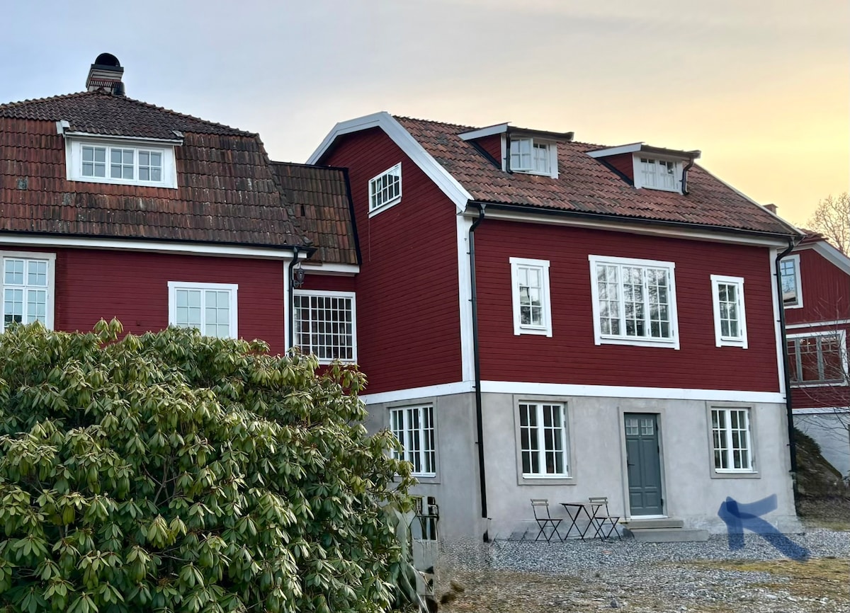 Na novo prenovljen sodoben svetlo odprt apartma z lastnim vhodom. Dobra povezava z mestom in arhipelagom vozlišča, Vaxholm. 2 x zakonske sobe (160 in 120 cm postelje), TV, WiFi, oblikovalec raztegljiv kavč, kuhinja, WC in tuš, velika južno obrnjena veranda s pergola in pohištvo. Parkirišče za 1 avto. Najem vključuje posteljnino in brisače. (B & B na zahtevo).