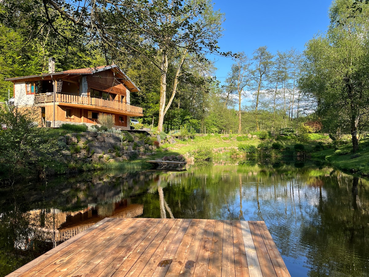 4-zvezdični planinski dom izključno za vas, z notranjim bazenom, ki je vse leto ogrevan na 28 °C Spa z zasebno masažno kadjo in infrardečo savno Celotna infrastruktura je rezervirana izključno za vas, v koči ni drugih dopustnikov ali lastnikov Brez sosedov, koča je izolirana v osrčju gozda Žar na oglje, velika opremljena terasa, zasebni park z ovcami, velikanska šahovnica in slackline za zabavo na prostem Kočo je ustvaril Sébastien, od velikega dela do pohištva