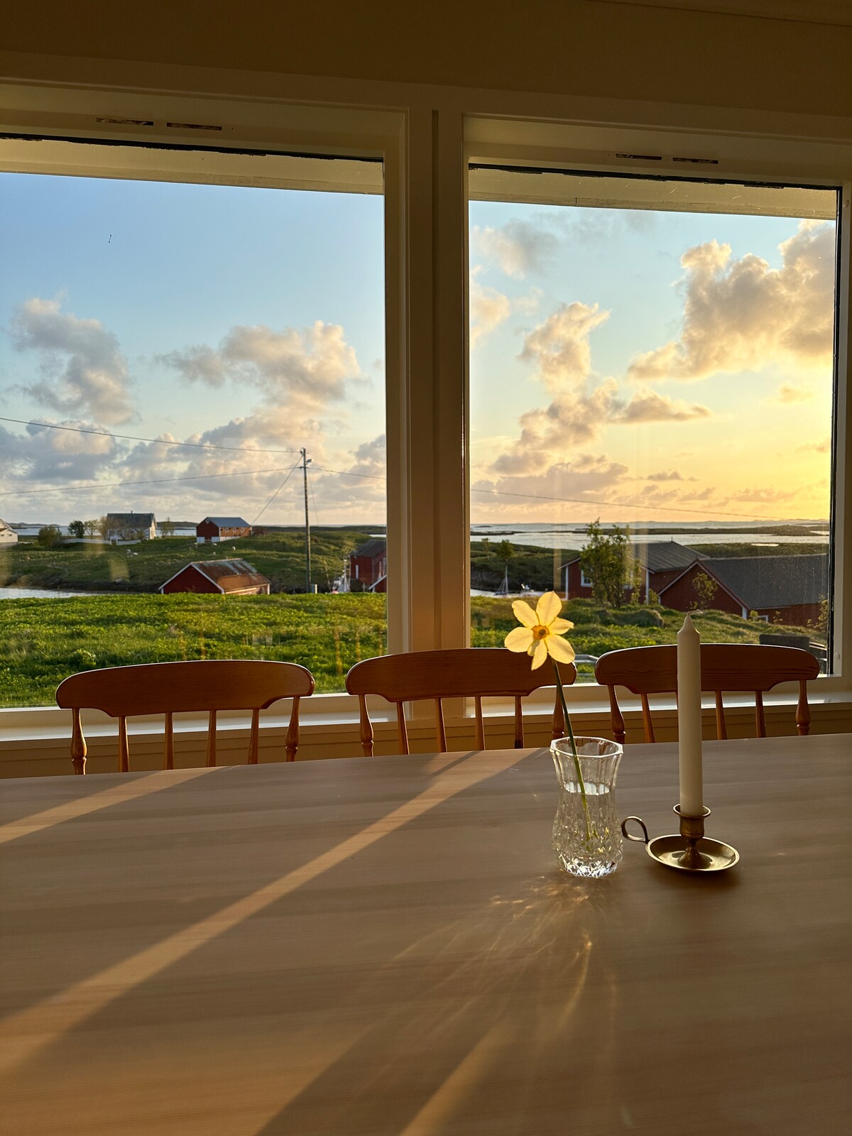 The cottage is placed in the north of the island. This is the only erea with the longest hours of midnightsun. This building is orginale a boathouse. Moved 400 meters from Nes harbor for about 10 years ago. It is restored from a primitive boathouse to a cozy cottage in a private lush plot with ocean view. You have your private carparking place, lawn, sitting erea with outdoor furniture and a firepan. Minimum four day rental.