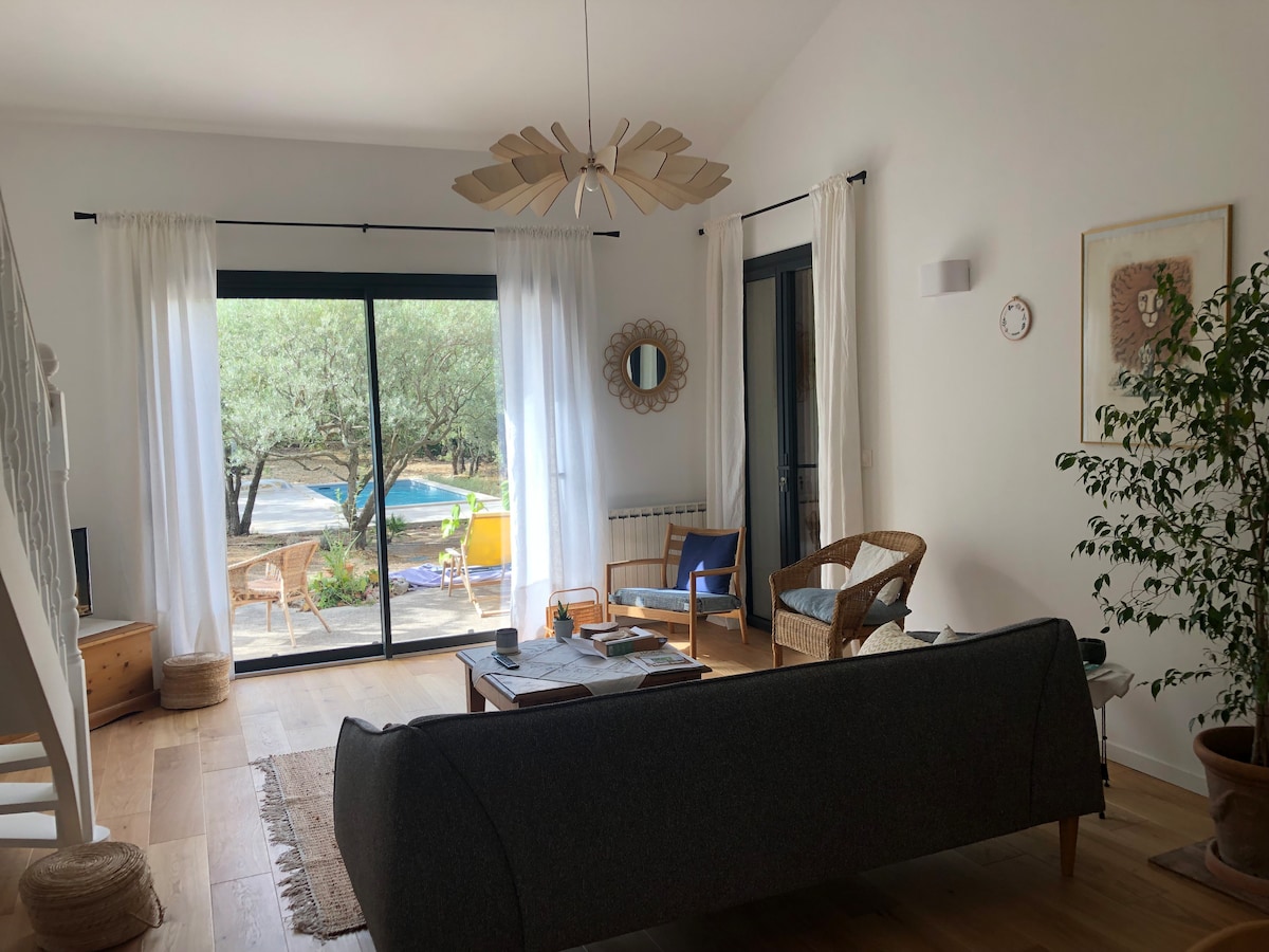 »La Maison aux Oliviers« je majhna očarljiva kmečka hiša s površino 90 m2, klimatizirana, neodvisna in se nahaja na starem oljčnem nasadu, mirna na urejenem vrtu, ki ponuja čudovit zasebni ogrevan in varen bazen. Njegova široka tenda ponuja priložnost za življenje na prostem, zaščitenih pred soncem in vetrom (mistral). V bližini zgodovinskega središča, lokalne tržnice in trgovin (peš) je popolnoma opremljen za delo na daljavo (hitra vlakna)