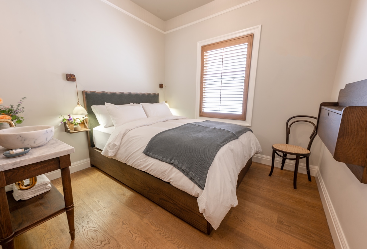 Naša obsežna dvosobna suita je odlično izhodišče za družine, prijatelje ali tiste, ki iščejo več prostora, s prostornimi in svetlimi zasebnimi spalnicami s pogledom na Venice Beach in ocean. Edinstvena suita je opremljena s starinskimi najdbami, pohištvom po meri in ročno izdelanimi detajli, s kuhinjsko nišo in velikim hladilnikom Smeg, namenskimi dnevnimi in jedilnimi prostori, kopalnico in ločeno pralnico.