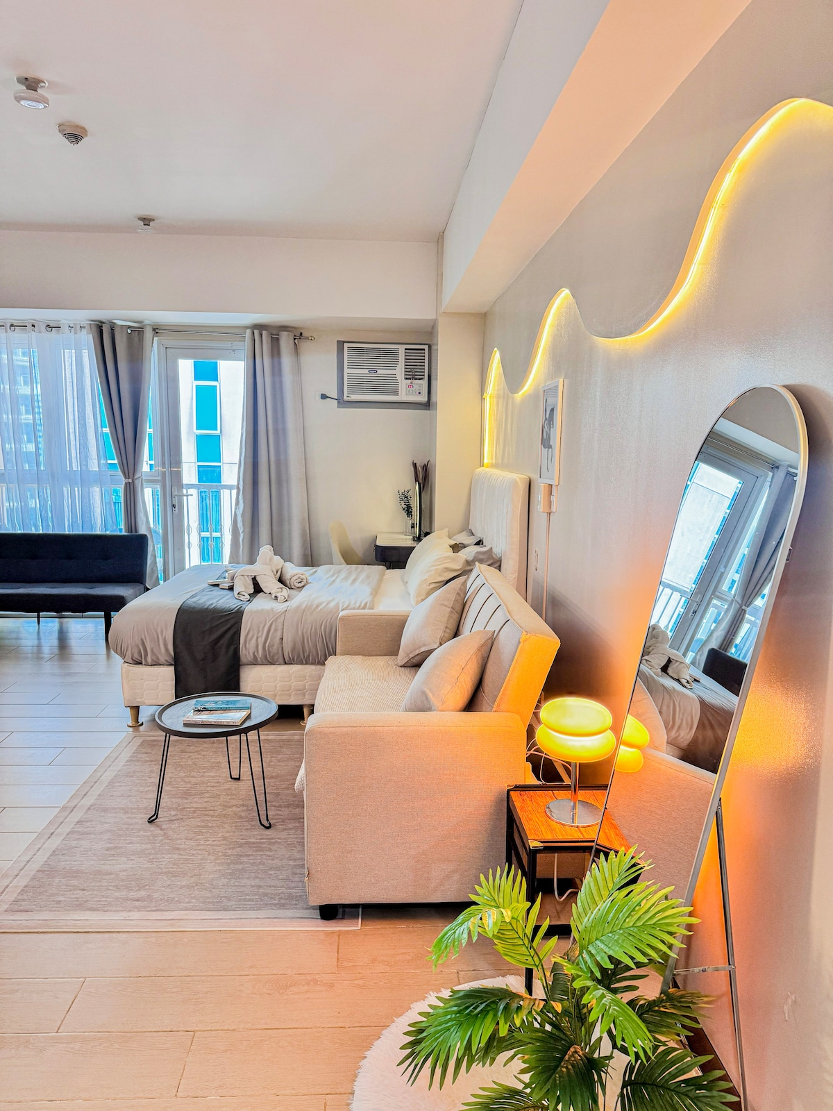 V ŽIVO! Ne glede na to, ali ste na poslovnem potovanju, obiskujete družino ali potujete skozi Azijo, ne iščite dlje. Kar je bila nekoč enosobna stanovanjska enota, je bila zdaj predelana v prostoren velik studio (osem kvadratnih metrov!). Nahaja se v eni od najvišjih stanovanjskih stavb na Filipinih in je lahko vaš dom. Če so izbrani datumi rezervirani, si lahko v mojem profilu ogledate tudi naše druge garsonjere, ki jih upravljate.