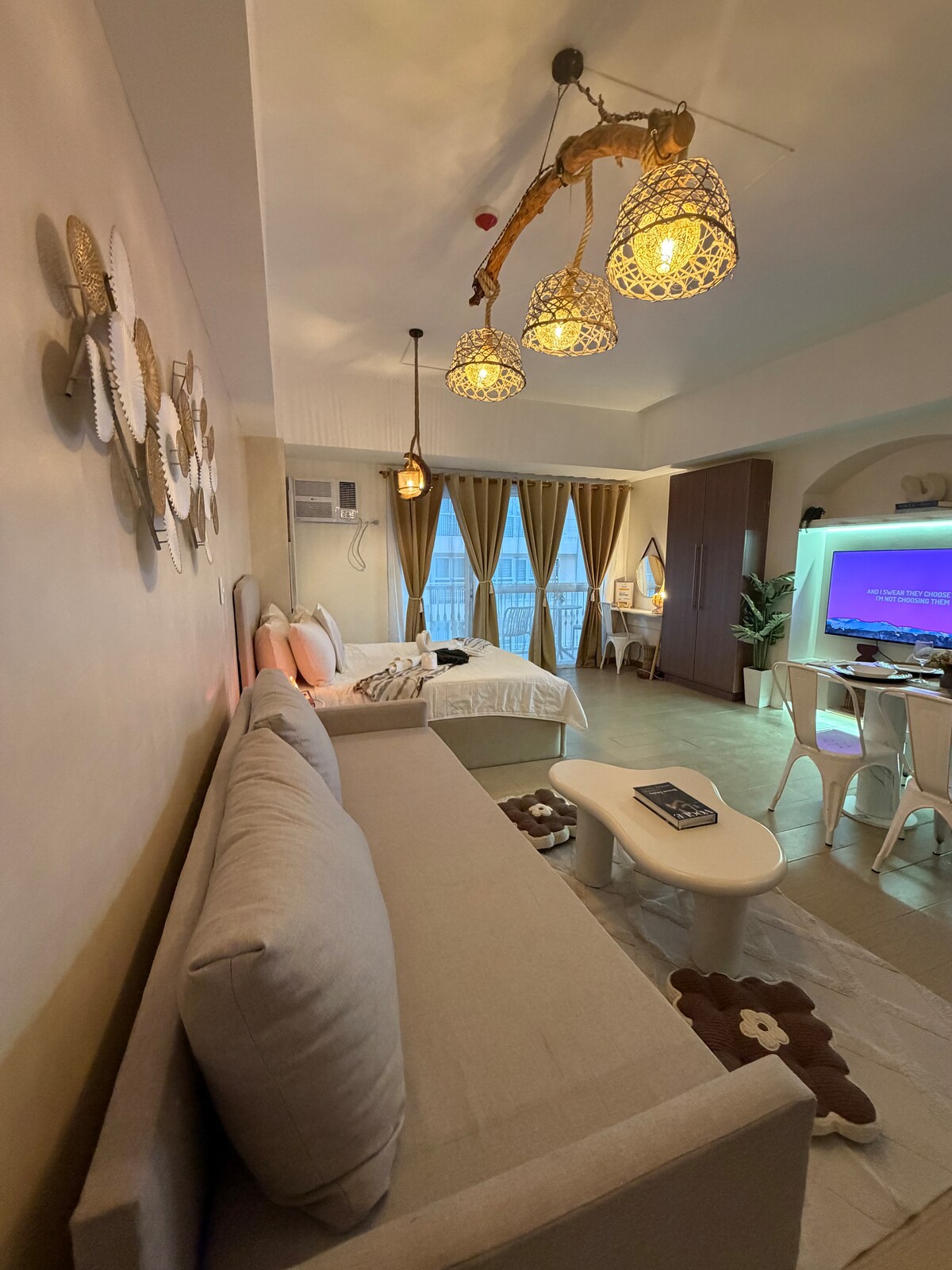 Odkrijte Zen Casa Airbnb – mirno garsonjero z zakonsko posteljo (Queen), raztegljivim kavčem in zložljivo vzmetnico Ikea SlaKt za največ tri goste. Nahaja se v bližini nakupovalnega središča Venice Grand Canal Mall, kjer lahko uživate v nakupovanju in obedovanju. Le 10 minut vožnje do BGC in 30 minut vožnje do letališča Manila. Varnost je zagotovljena z digitalno ključavnico in dostopom do dvigala s kartico RFID. Oprema vključuje bazen, telovadnico, igrišče in teniško igrišče. Kaj vam bo všeč: •udobna postelja •Hiter in zanesljiv Wi-Fi •pametni televizor z Netflixom •non stop varnost