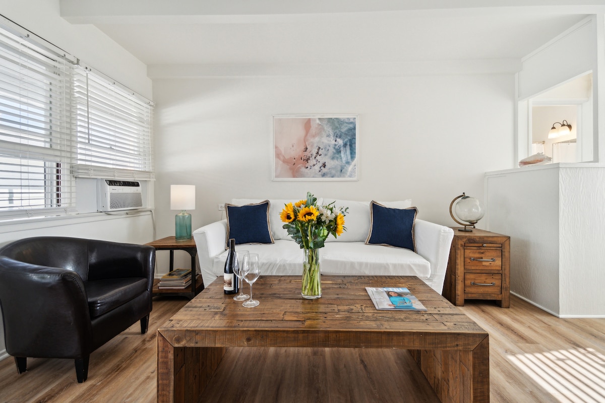 Enjoy your stay in a stylish and spacious mid-century modern apartment with premium amenities - hot tub, pool, gym, playground, BBQ area. Ideally situated between Los Angeles and Santa Barbara, it's perfect for a weekend escape and fully equipped for an extended stay. INCLUDED: *Access to heated pool, large hot tub, gym *55" Smart TV + Netflix & HBO *850 sq. ft. *Coffee, tea, cookies *Private balcony *Fully equipped kitchen *Parking *Washer, dryer, dishwasher *Workspace + monitor