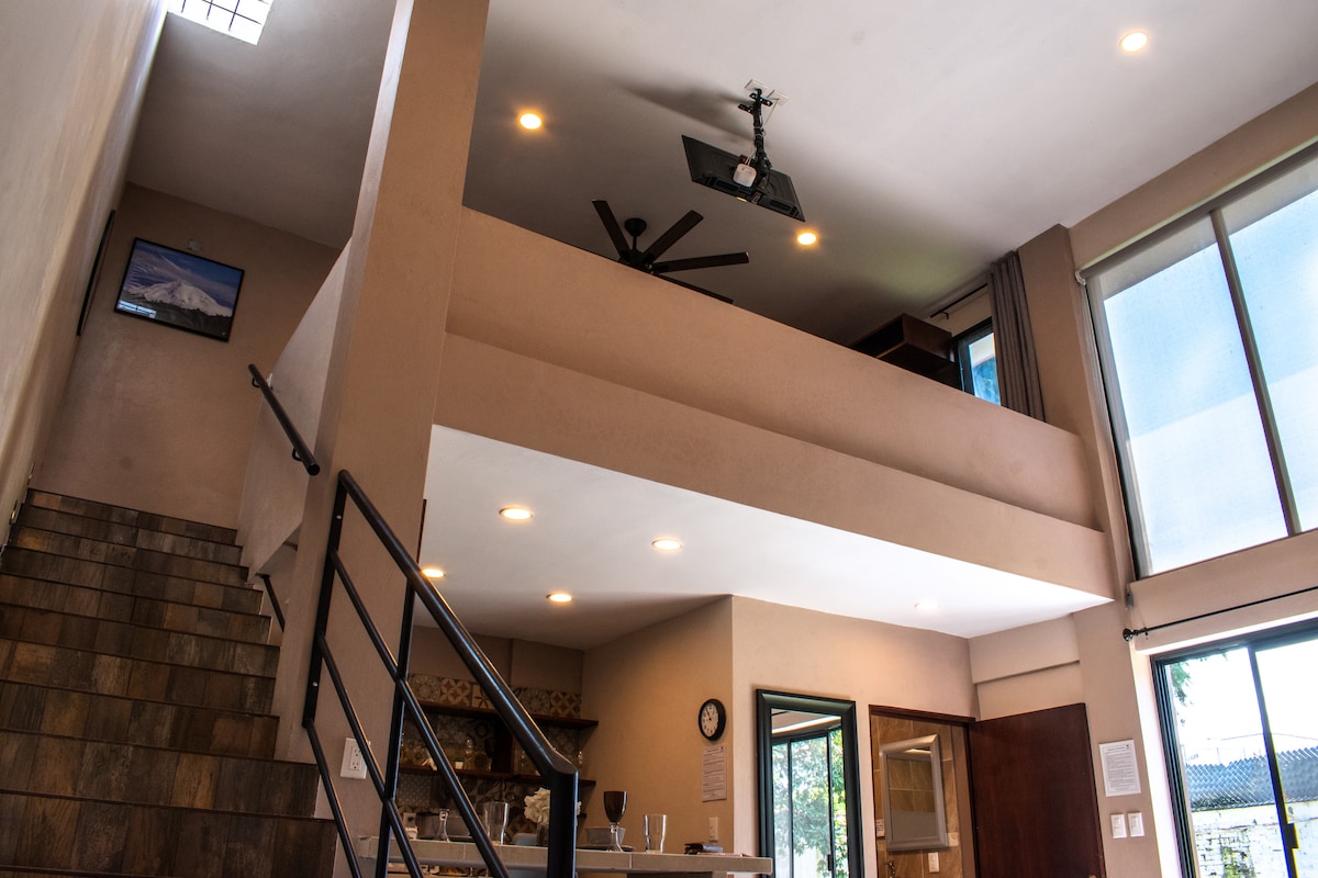 Vive la experiencia de un loft privado, moderno y luminoso en Orizaba, Pueblo Mágico, rodeado de las Altas Montañas. Su doble altura lo hace único y elegante, con diseño minimalista, atractivo y cómodo. A minutos del centro histórico, sitios turísticos y zona industrial. Disfruta de estacionamiento y amplio jardín compartido con otro loft similar. Ideal para familias o grupos de hasta 6 personas. El loft está al fondo de la casa principal, en una zona tranquila y segura.