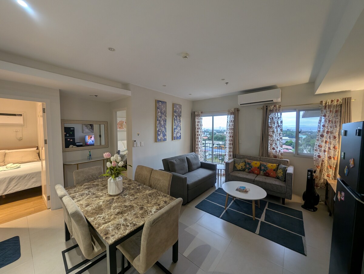 ☆ Udobna oaza z 2 spalnicama I 4 min. Sprehodite se do nakupovalnega središča SM Mall of Davao – Ecoland!☆ Bivajte udobno in stilsko v našem čudovitem dvosobnem stanovanju v One Oasis Davao, le 4 minute hoje od SM Mall of Davao v Ecolandu. Uživajte v brezplačnem dostopu do bazena, omrežju Wi-Fi in kompaktni kuhinji, kjer lahko pripravite svoje najljubše domače obroke. Idealno za družine ali prijatelje, ki iščejo zabavno, sproščujoče in cenovno ugodno bivanje. Uživajte v mestnih ugodnostih in udobju letovišča – vaš oddih v Davaoju se začne tukaj! 🌴
