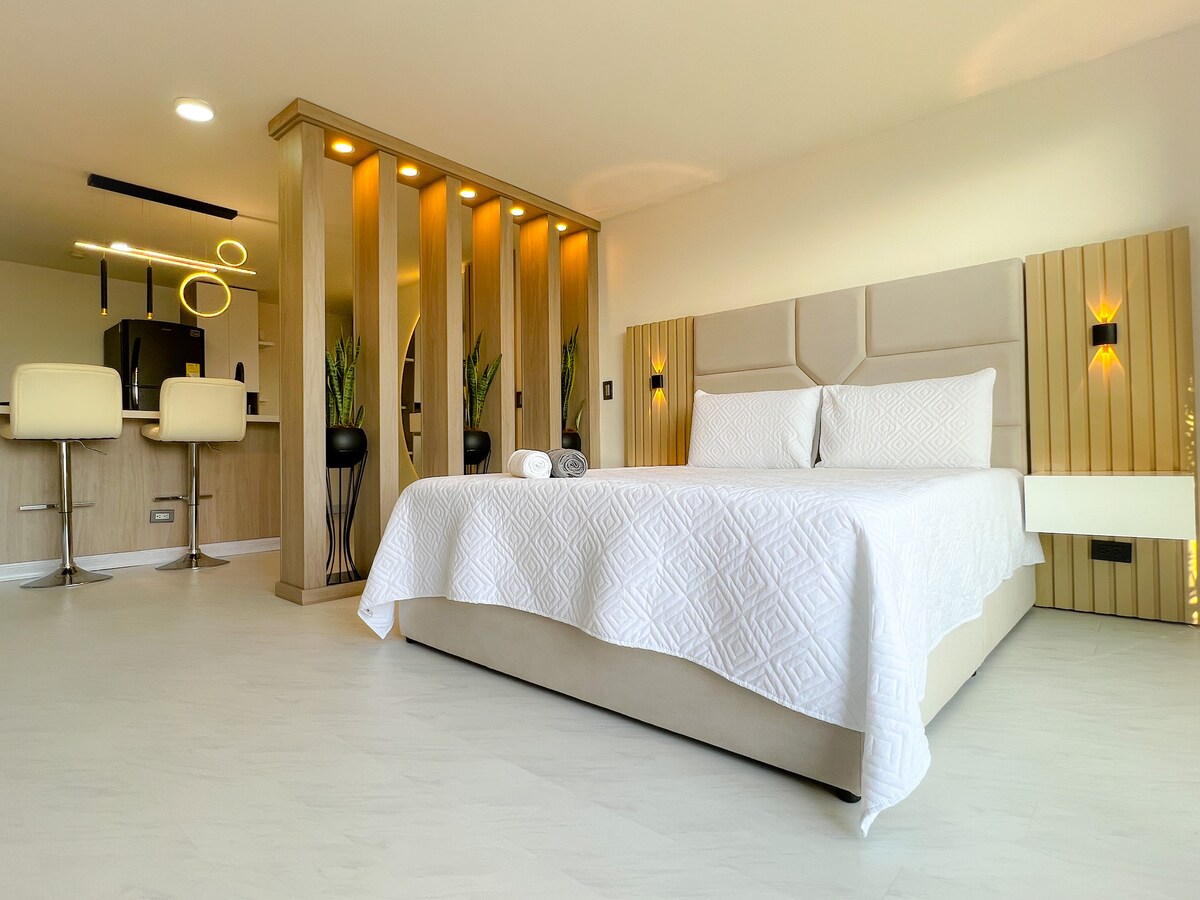 - Ubicación privilegiada: en el corazón del barrio Laureles, cerca de estaciones del metro, el estadio, supermercados, restaurantes y la 70. - Excelente balcón con vistas a la ciudad. - Wifi (300mb) Fibra Óptica. - A/C - Jacuzzi privado - Personal en el lugar 24/7, dispuesto ayudar en todo lo que puedas necesitar. - TV Inteligente 43”, con apps instaladas. - Cocina equipada con vajilla, ollas, cucharas, cuchillos. - Cama tamaño Queen (1,60mt x 1,90) - Precios transparentes (Ver Reglas)