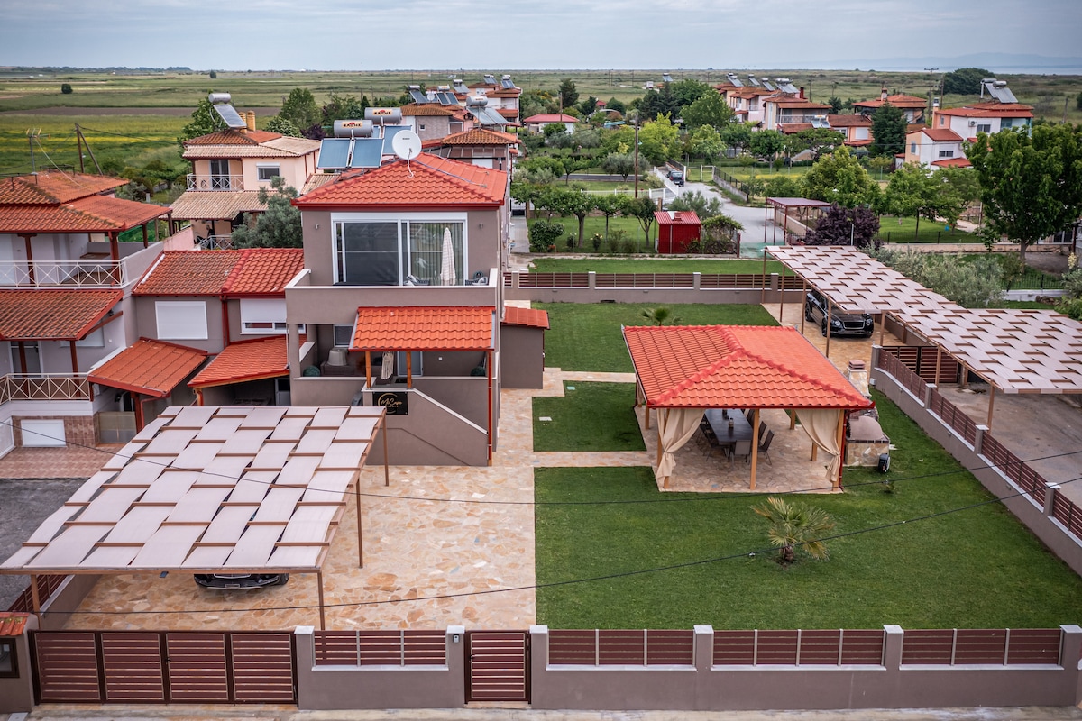 Luksuzna hiša v osrčju narave in 8,5 km od Verije, 9 km od Panagia Soumela, 25 km od smučišča Seli, 35 km od kraljevih grobnic Vergina. Idealno za sprostitev, navdih, zasebnost in kakršenkoli sprejem. Ima 3 spalnice ,kamin, savno, 4 kopalnice, žar in zvočnike v zunanjem prostoru. Ograjeno z varnostnim sistemom in vso opremo, ki zagotavlja razkošno izkušnjo.