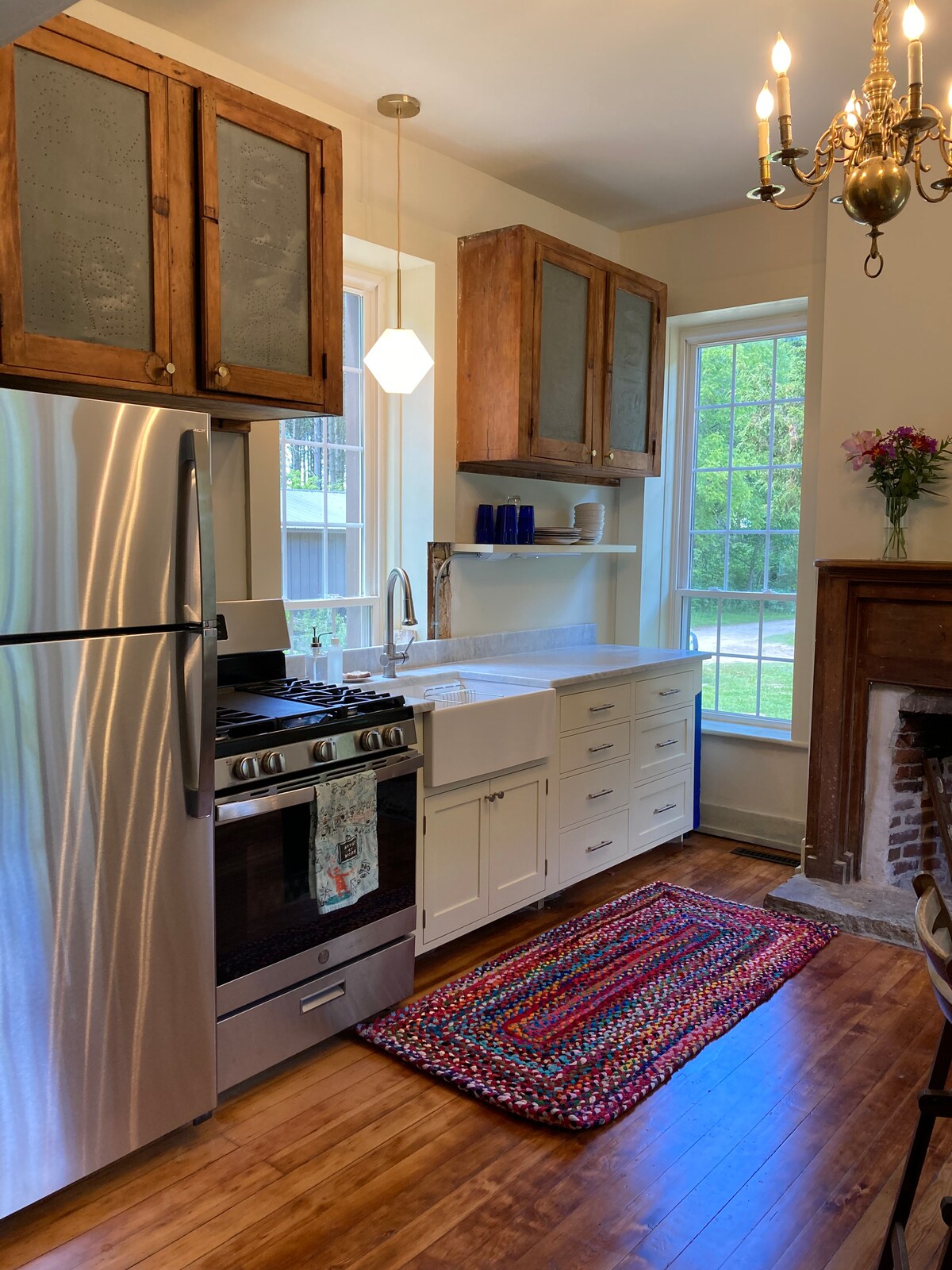 Zabavna, urejena 23-letna podeželska koča na 120 hektarjih kmetijskih zemljišč in gozdov v zasebnem, mirnem podeželskem okolju. Udobno je, 950 kvadratnih čevljev, zgrajeno iz kamna in lesa. Odprti koncept z dvonadstropnim kaminom, kaminom na verandi, kaminom in odprtim podstrešjem za spanje (1 postelja), s spiralnimi stopnicami, veliko okni, orehovimi tlemi in oblogami, hrastovimi tramovi in borovimi kuhinjskimi vrhovi. Prha je velika in odprta, vrata pa se odpirajo na zadnjo teraso za prhanje na prostem. Čudovita pokrita veranda s pogledom na valovite travnike in gozdove.