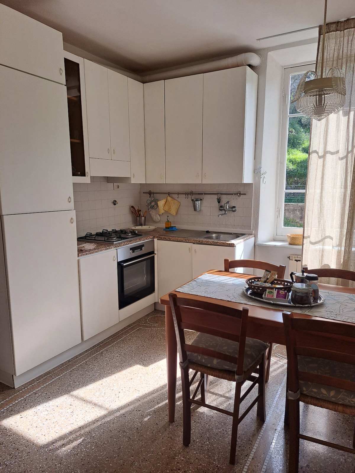 Uživajte v elegantnem čaru poenostavljene kuhinje z živahnimi betonskimi tlemi in minimalističnimi cvetovi. Večerjajte za ročno izdelano mizo. Udobno se namestite s knjigo na kavču v svetli dnevni sobi sredi apstraktnih umetniških del, čistega pohištva in trendovskega dekorja. Naše na novo prenovljeno stanovanje je sestavljeno iz dveh spalnic, dveh kopalnic, dnevne sobe, jedilnice, kuhinje in hodnika. Celotno stanovanje je klimatizirano in poleg tega ima vsaka od spalnic ločen ogrevalni/klimatski sistem. Spalnica 1: ena zakonska postelja ali dve enojni postelji - razporejena po vaših željah 2. spalnica: ena zakonska postelja Obe kopalnici imata prostorne prhe. V popolnoma opremljeni kuhinji lahko pripravite okusen obrok in uživate v jedilnici z družino ali prijatelji. V dnevni sobi lahko uživate v času drug z drugim ali gledate televizijo na 55-palčnem zaslonu. Naši gostje bodo imeli dostop do celotnega stanovanja. Skupaj z mojo soprogo smo se dogovorili za klepet z našimi gosti (prek storitve WhatsApp/Messanger), da vam bomo lahko non stop nudili predloge, pomoč in priporočila. Naš najljubši jezik je angleščina, lahko pa komuniciramo tudi v italijanščini, francoščini, poljščini in španščini. Stanovanje se nahaja v središču mesta La Spezia tik ob pešpoti in železniški postaji. V bližini je veliko odličnih restavracij, barov, kavarn in trgovin. Če pridete z avtomobilom, bomo z veseljem našli najboljšo rešitev za parkiranje. Nato pa lahko pozabite na avto in z nogami ali javnim prevozom pridete do krajev, ki jih potrebujete. Železniška postaja -> 3 min hoje Območje za pešce -> 2 min hoje Marina s trajekti -> 10 min hoje Avtobusna postaja -> 1 min hoje Obveščamo vas tudi, da organi od vseh gostov zahtevajo, da plačajo lokalno takso v višini 2,5 EUR/osebo/noč (>16 let) za največ 5 zaporednih nočitev. Ta znesek se plača v gotovini ob prihodu. Poleg tega moramo obvestiti lokalno policijsko pisarno, ki se registrira za goste, zato bomo potrebovali nekaj informacij vseh gostov, da izpolnimo to zakonsko zahtevo.