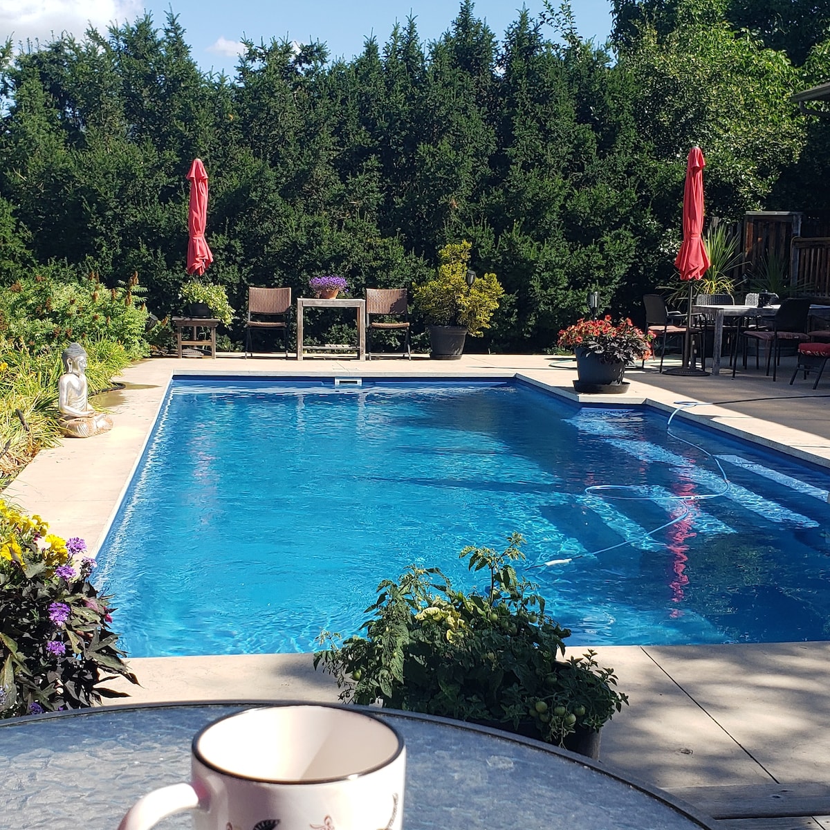 Welcome to your vineyard escape! Our bright, comfy 1,500 sq. ft. suite is tucked beneath the vines and just a lazy stroll from amazing local wineries. This property is not suitable for children under 12. You’ll have two queen bedrooms (one private, one semi), a full bathroom, and a spacious open area with a living room, dining area, and kitchenette. Sprawling patios, a BBQ, pool, and vineyard views. We’re right upstairs if you need anything—otherwise, it’s your little piece of paradise.