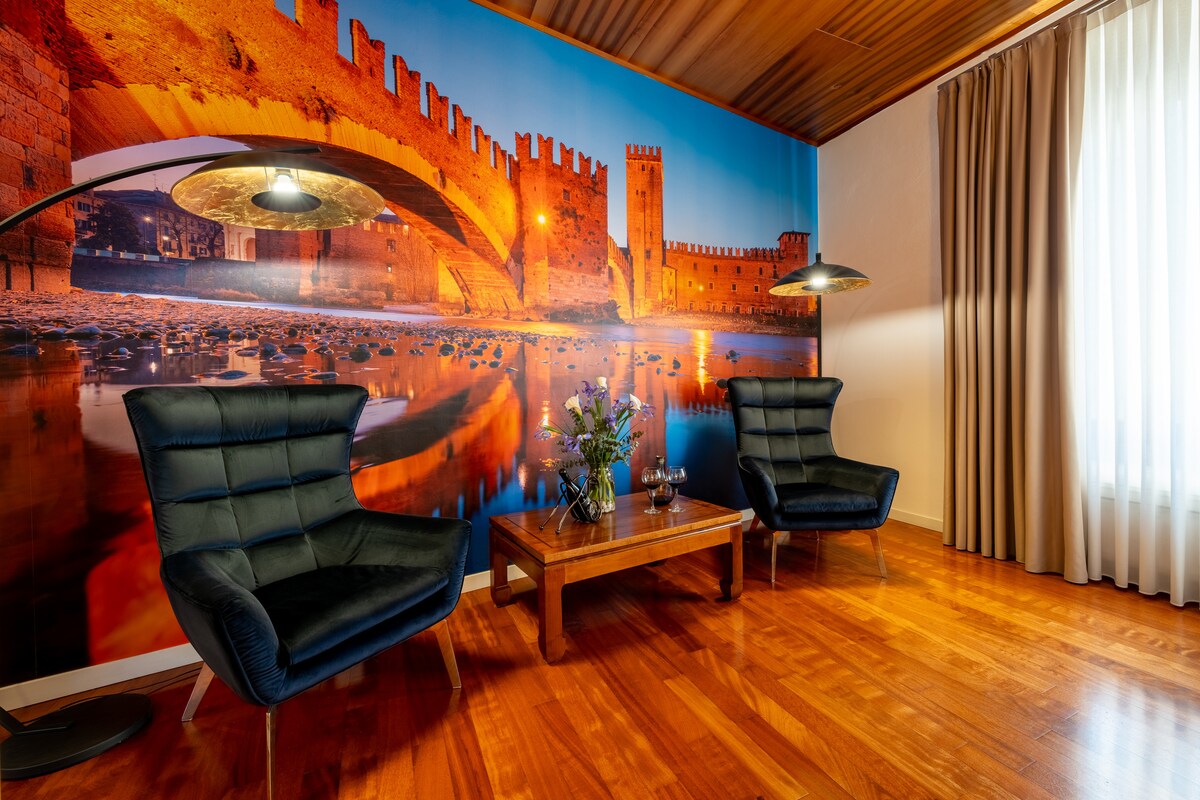 Appartamento, ristrutturato a nuovo, dotato di cucina attrezzata, 2 bagni con doccia, lavatrice, 2 camere matrimoniali, mentre la 3 camera dispone di 2 letti singoli. "Suite Castelvecchio" ha 2 balconi, uno con vista su cortile interno e il secondo con vista su Teatro Ristori, da cui ha preso il nome dalla famosa attrice dell'Ottocento, Adelaide Ristori. L'appartamento si trova all'interno di Palazzo Ristori e dispone, su prenotazione, di posto auto/garage. A pochi passi dall'Arena di Verona.