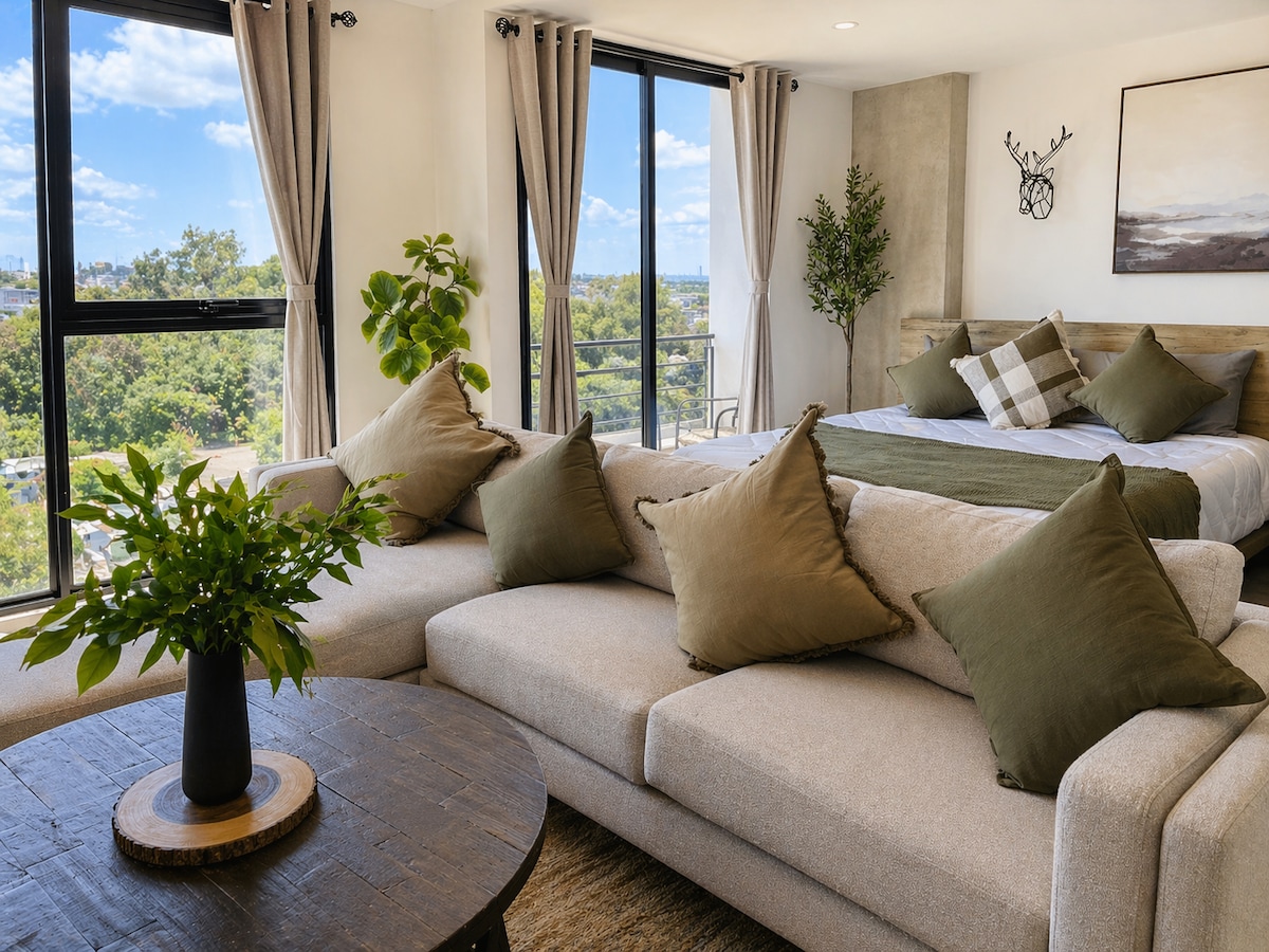 Elegantno predelano stanovanje z betonskimi stenami, jeklenimi tramovi in lesenimi oblogami ter botaničnim vzdušjem, ki ustvarja svež in industrijski slog. V spalnici uživajte v ogromnem razgledu na najbolj zgodovinsko ulico Tijuane. Povzpnite se na streho in uživajte v koncertu in razgledu na ulice ob ognjišču. Non stop varnost in dostop samo s kartico. Doživite najbolj osrednjo lokacijo Tijuane, kjer so klinike, supermarketi, bari, restavracije in kavarne oddaljeni manj kot 5 minut hoje.