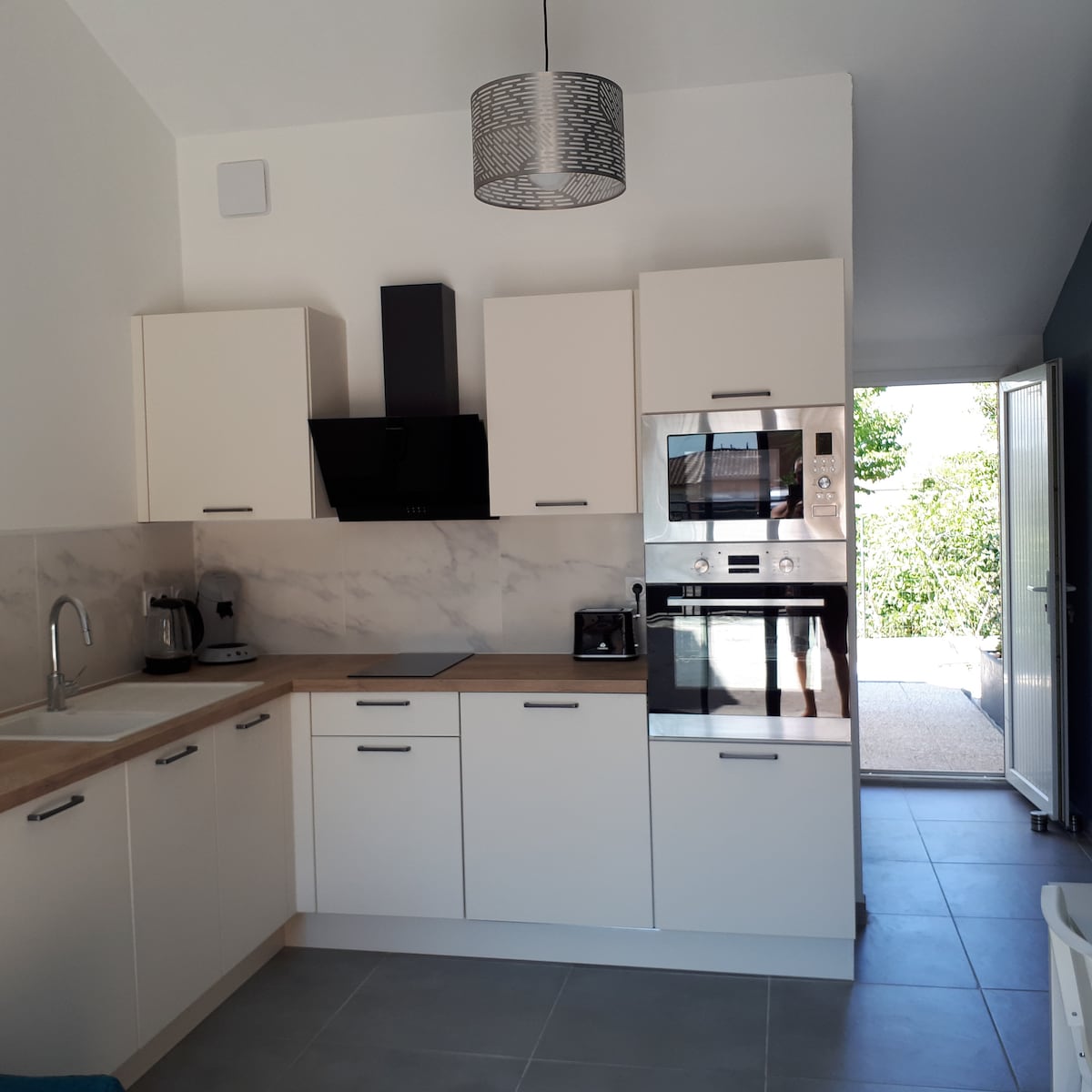 Pozdravljeni, ponujam vam ločeno stanovanje v zasebni hiši, v kateri zasedam sebe in svoje otroke, Imate priložnost za parkiranje 2 vozil, rjuh in brisač, ki so vključeni S teraso in vrtnim pohištvom. Stanovanje je klimatizirano in v celoti obnovljeno. V bližini trgovin (Leclerc,Auchan,avtoceste) Želim vam prijetno bivanje