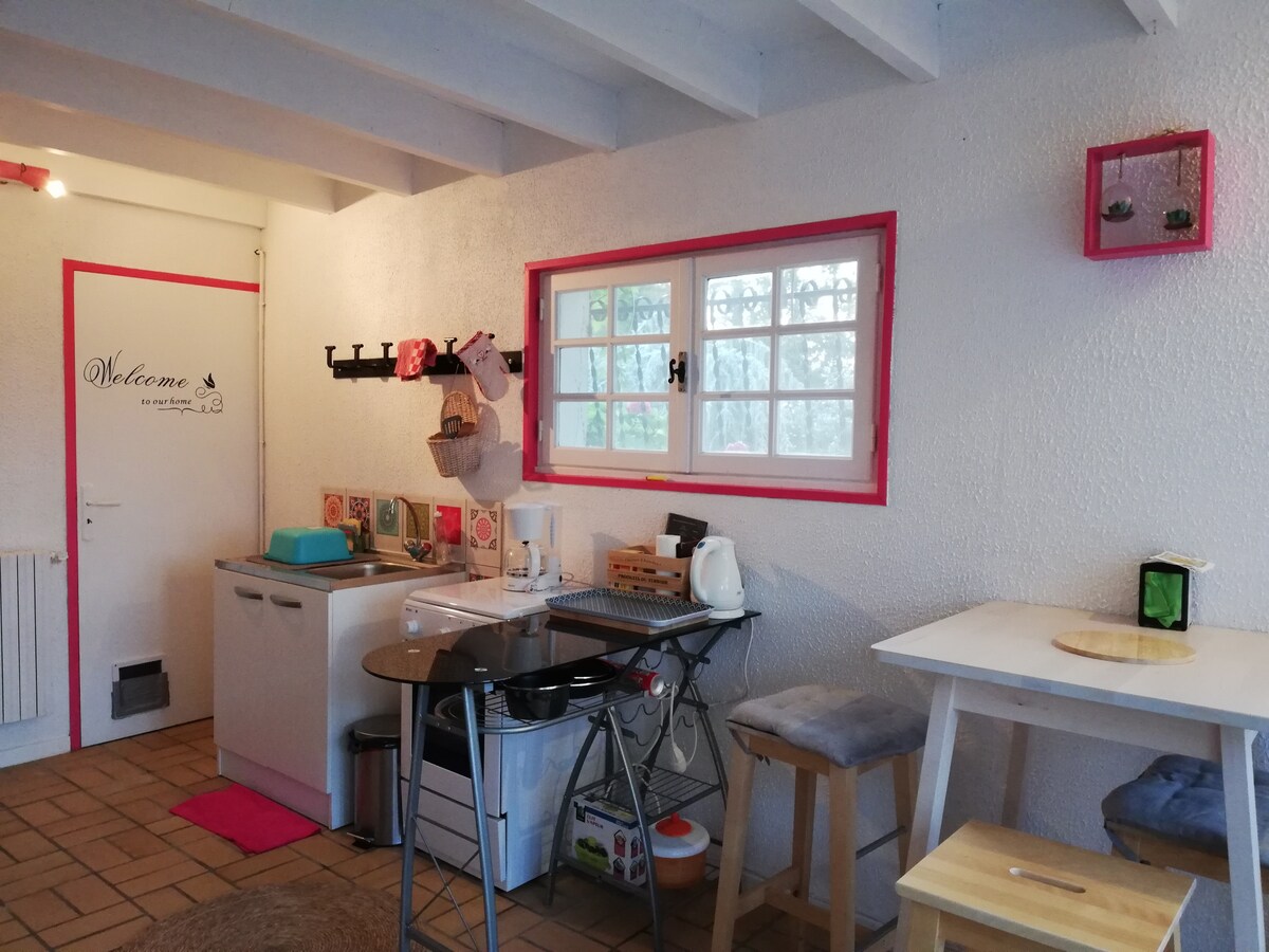 Mirna vasica, 5 minut od ceste A75, Vichel je osrednjega pomena za odkrivanje Auvergneja! Ponujam prijetno, majhno in popolnoma zasebno nastanitev, ki se nahaja v krilu moje velike hiše, postavljene v 5.000 m² velikem ograjenem vrtu. Zasebni vhod, majhna kuhinja, 35 m² velika spalnica, 140 cm široka postelja in raztegljiv kavč, pisalna miza, TV, kopalnica, stranišče. Posteljnina je zagotovljena. Zunaj so majhna terasa, ležalniki in vrt. Avtomobil v namestitvi, zaklenjen. Psi so dobrodošli pod pogoji. Če se želite strinjati, se obrnite name.