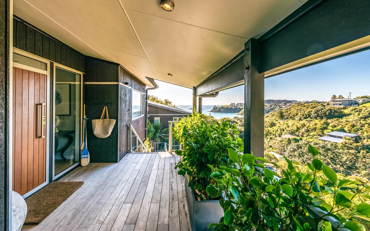 Mai Mai Mai je elegantno in zasebno zatočišče za romantičen oddih ali počitnice s prijatelji. To novo arhitekturno zasnovano prenočišče sprejme 4 goste in je popolnoma umeščeno med vrvežem Oneroe in plažami Onetangija za dostop do vsega, kar ponuja Waiheke. Sprostite se ob kozarcu vina na širni terasi z razgledom, plavajte v Rocky Bayu, uživajte v degustaciji vinogradov Stoneyridge in Tantalus vse iz tega zasebnega skrivališča.