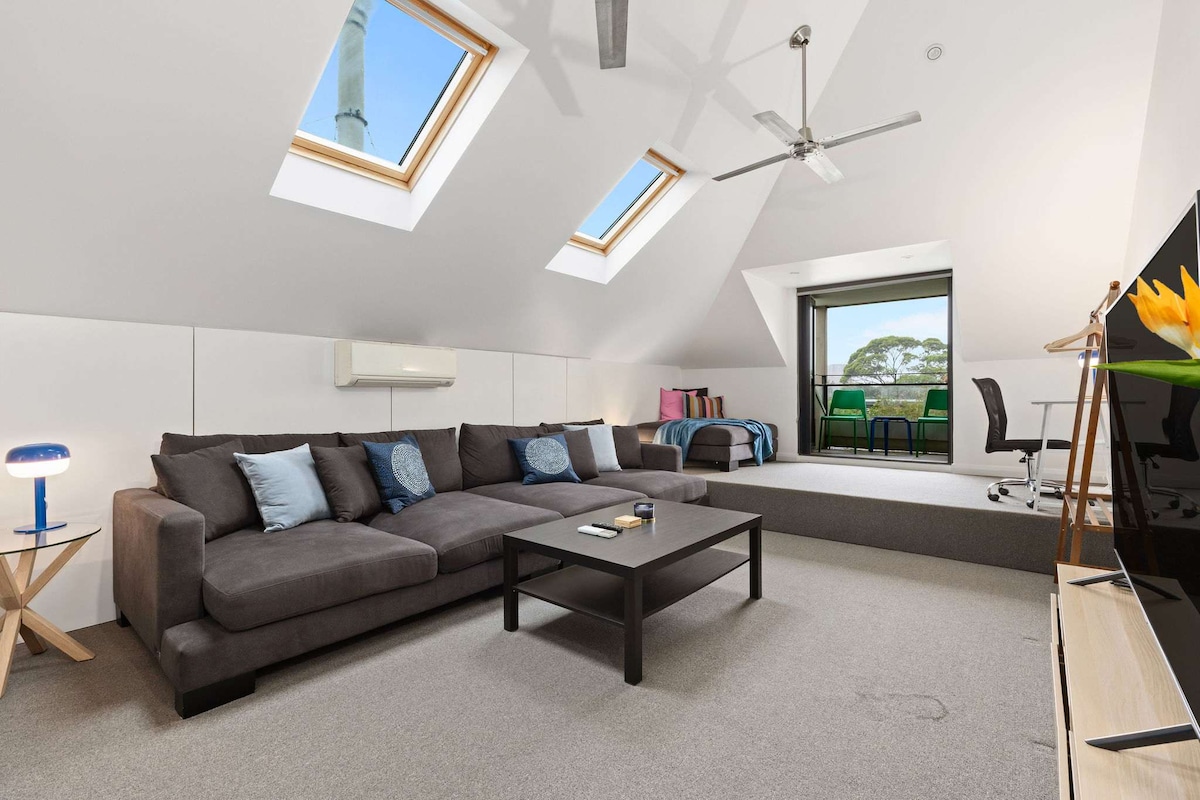 Udobna prenočišča @ Newtown je elegantno in popolnoma locirano podstrešno stanovanje v garsonjeri v Newtownu. Idealno za popoln oddih v Sydneyju, le nekaj korakov do navdušenja nad nakupovanjem, obedovanjem, zabavo in javnim prevozom v Newtownu Garsonjera v mansardi ima značilnosti - Aircon (ogrevanje in hlajenje) - Kuhinja - Pralnica -1 spalnica z zakonsko posteljo (Queen). Odpri načrtujte bivalni prostor in jedilnico - Balkon - Wi-Fi