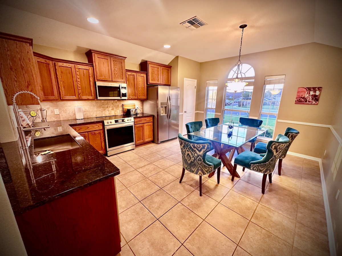 Your next home away from home is located on the golf course in the sought after Colony Creek Country Club. It has been recently updated with all the amenities for a large family or group to stay a night or the entire month! It’s minutes away from shopping and restaurants, UHV, hospitals, the mall, and all that Victoria has to offer. Our home offers a clean, Texas modern vibe with Wi-Fi, space to work, large mounted televisions, comfortable beds, and a fully stocked and updated kitchen.