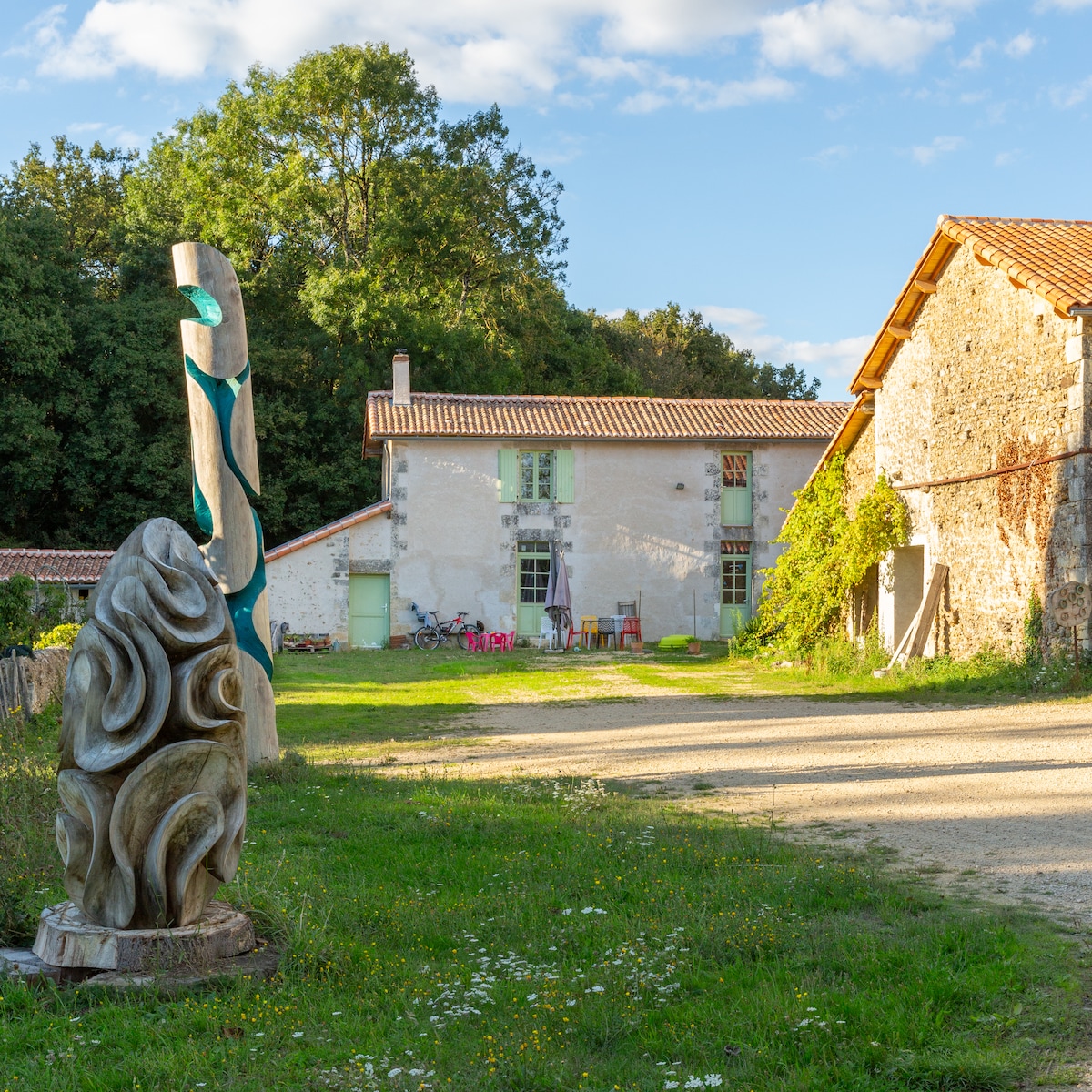 Moje bivališče se nahaja na podeželju Poitiersa, 20 minut od Futuroskopa in 10 minut od golf igrišča Mignaloux. Cenili boste mir zgodovinskega kraja, kakovost prenove, park s 4 hektarji, gozdnato in cvetlično, reko, ogrevan bazen (od junija do septembra), tenis, košarko, namizni nogomet. Idealno za pare, družine in štirinožne prijatelje. Posteljnina je na voljo, pa tudi skodelice za kavo/čaj. Zelenjavni sadje in zelenjava z zelenjavnega vrta, odvisno od letnega časa. Wi-Fi. Pametna televizija. Zasebna savna