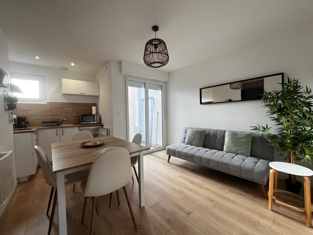 Venez vous détendre dans ce logement calme et élégant. Situé à 200 mètres et à 3 minutes à pied de l'océan, vous serez conquis par la terrasse arborée et bercés par les gazouillis des oiseaux ! Vous bénéficierez d'une place de parking privative vous facilitant la vie, ainsi qu'un café-restaurant et une épicerie à toute proximité pour vos courses. Nouveauté : climatisation réversible installée :) Rien ne vaut le café du matin pris sur les dunes : alors n'hésitez pas, nous vous attendons !