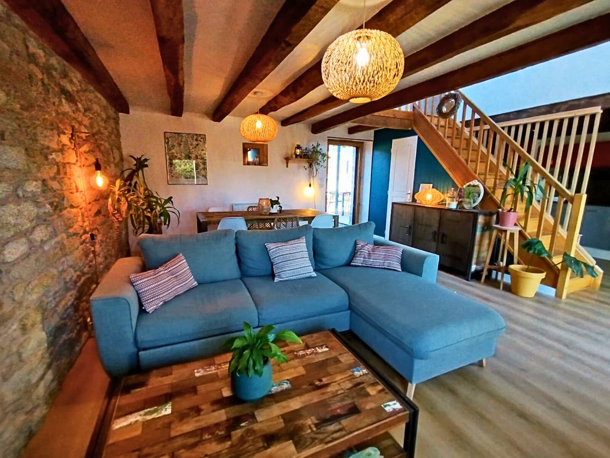 Offrez-vous une parenthèse hors du temps au Gîte Onirique : une longère du XVIIIᵉ siècle pleine de charme, avec murs en pierre et cheminée. À 15 min de Nantes, au calme, avec jardin à deux pas, cuisine équipée et check-in autonome. Parfait pour un couple en quête de déconnexion, de nature et d’un lieu atypique avec possibilité d'un couchage enfant (lit queen size + fauteuil convertible) Un canapé lit 140×190 complète le couchage Capacité de 4 personnes maximum Ambiance douce et chaleureuse.