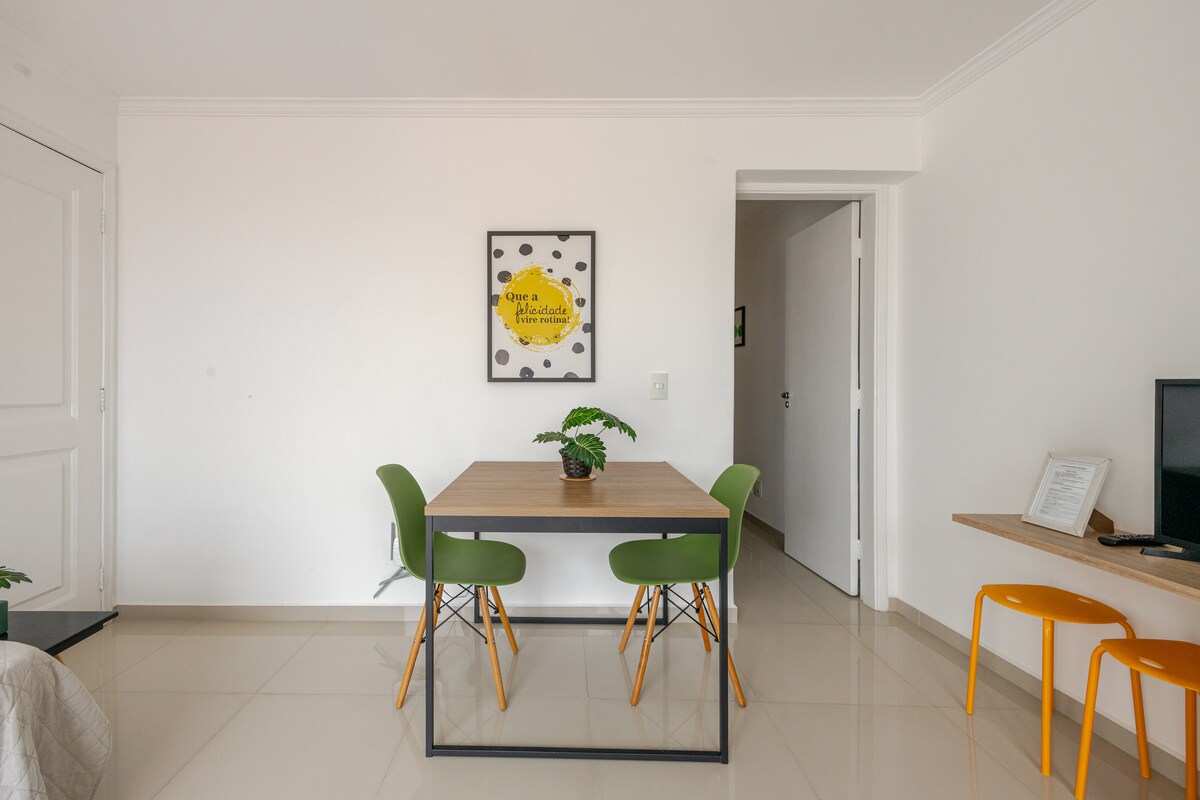 Studio 40011: 4 min od parka Allianz. Kompakten, sodoben, popoln in udoben studio v eni najbolj kulturnih regij São Paula. 📍 Obkroženo s kavarnami, restavracijami in predstavami. Tukaj mesto utripa ✨ Udobna postelja, pult, omara, klimatska naprava, TV in kuhinja, opremljena z aparatom za sendviče, cvrtnikom, aparatom za kavo, štedilnikom, hladilnikom. Zasebna 🚿 kopalnica in udobna razsvetljava. S tem vzdušjem »Želim ostati malo dlje« Idealno za uživanje, počitek ali delo. Rezervirajte zdaj!