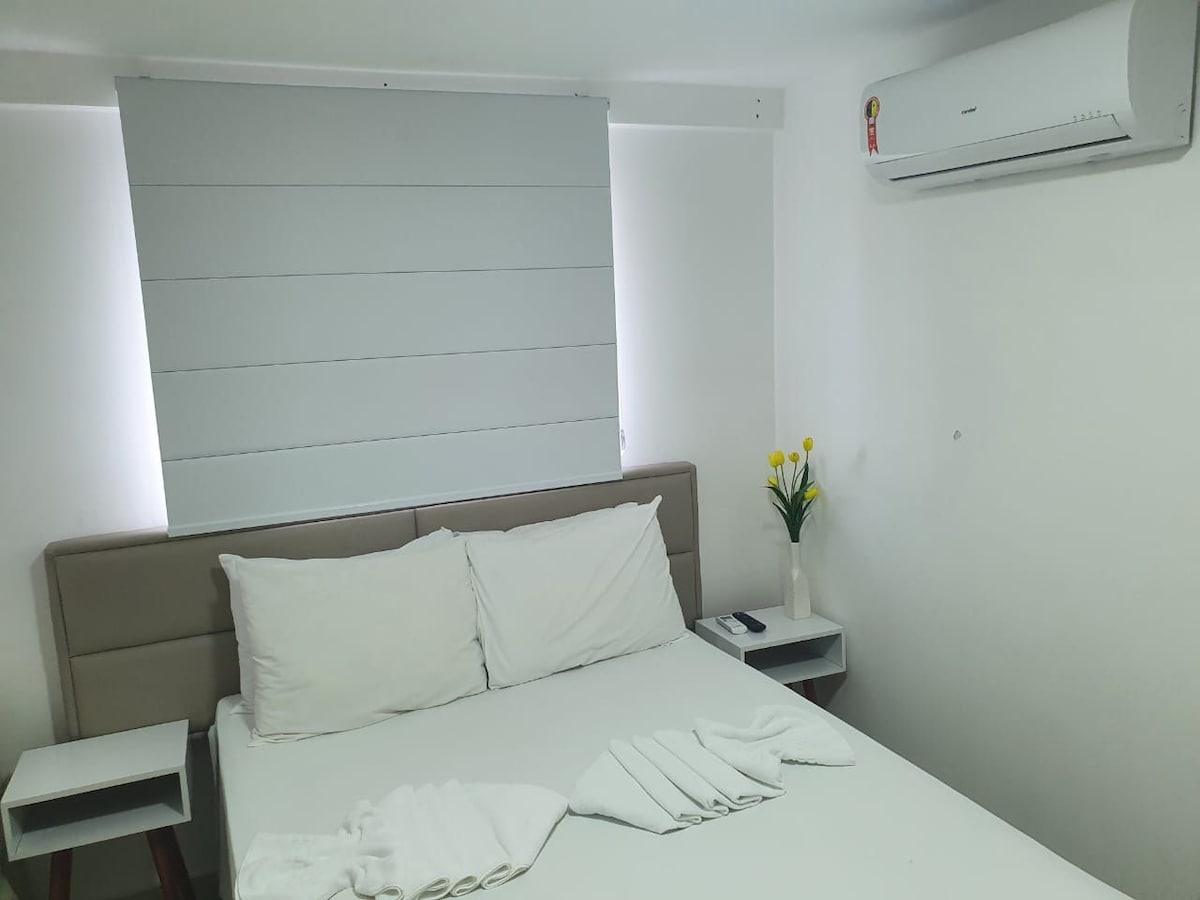 Bivajte v našem udobnem, sodobnem in odlično lociranem stanovanju: v središču Porta in le 200 metrov od morja. Prostor je bil zasnovan za popolno udobje do 3 oseb, z zakonsko posteljo + pomožno posteljo in popolnoma opremljeno kuhinjo. Na voljo so bazen na strehi, gurmanski prostori, bazen, salon in 24-urna recepcija Popoln umik za tiste, ki želijo uživati v Portu de Galinhas z udobjem in vsem v bližini OPOMBA: ker je stavba nova, lahko pride do občasnega hrupa zaradi prenove v drugih stanovanjih.