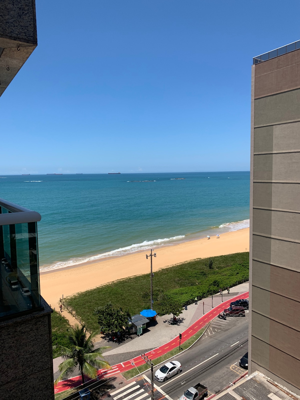 Apto. tipo loft, em prédio em frente ao mar e da pça dos namorados. Na cobertura, piscina, sauna e deck com vista maravilhosa. Ar condicionado split, TV a cabo, Wifi Perto de ótimos restaurantes, padarias gourmet, barzinhos, supermercado, e a dez minutos do aeroporto de Vitoria, cinco minutos do centro de convenções e quinze minutos do centro de Vitória. Garagem coberta incluso na diária. Portaria/recepção 24 hs.