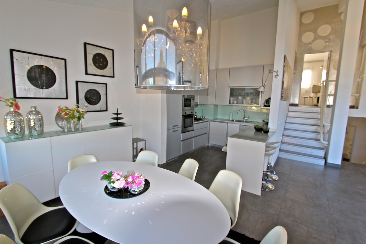 Dobrodošli v tem osupljivem, na novo prenovljenem penthouseu (avgust 2019) v dveh nadstropjih na vrhu ene najvišjih zgradb ob obali. Uživali boste v spektakularnem pogledu na plaže, promenado in značilno vas Armação de Pêra. Povsem ugodna lokacija na začetku peš otoka vam bo omogočila prijetne sprehode ob obali in prečkanje ceste ter neposreden dostop do brezplačne plaže.